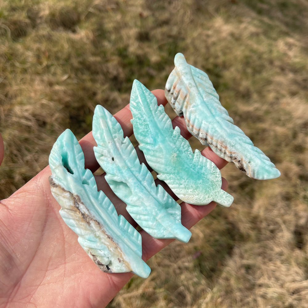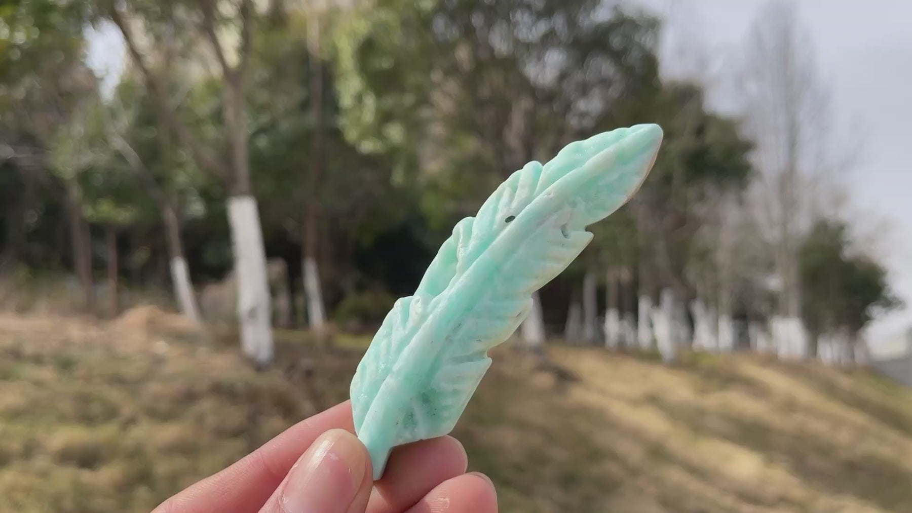 🌟Features:Each piece is carefully shaped into a lifelike feather, with a slender central shaft, delicate barbs, and a tapered tip that curves gently. The feather’s form highlights the stone’s wavy banding, with the soft turquoise hues wrapping around the shaft like gentle ocean currents, while the open druzy pockets offer a glimpse into the stone’s hidden beauty. The smooth, organic lines of the feather complement the natural patterns of the Hemimorphite, creating a piece that feels both delicate and grounded.Inspired by the positive symbolism of the feather—representing lightness, freedom, and the connection between the earth and sky—this design merges the calming, oceanic energy of Hemimorphite with the transformative power of the feather. It symbolizes emotional release, gentle growth, and the beauty of letting go, infusing any space with a sense of calm, warmth, and natural elegance.