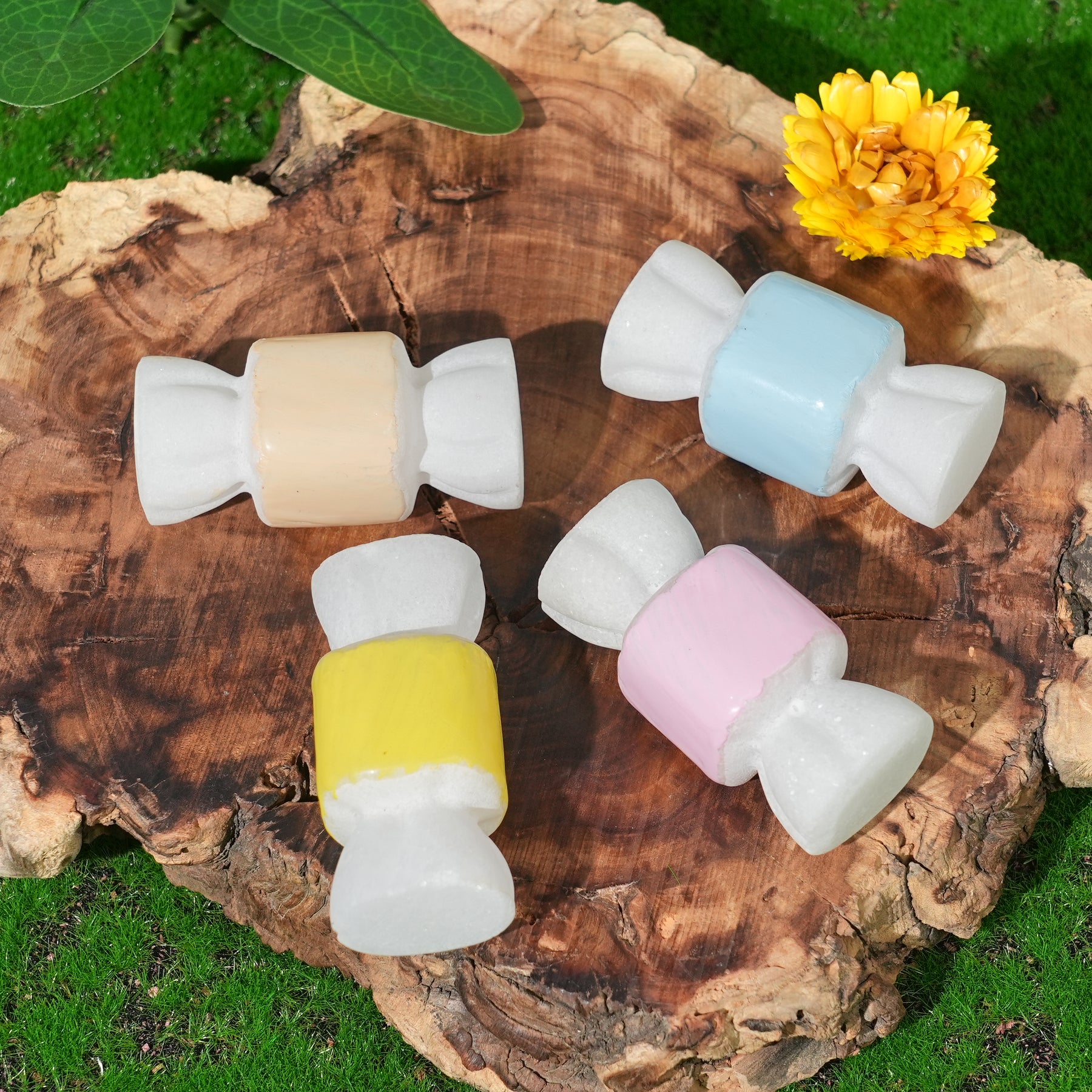 🌟Features:Inspired by serenity sweet simplicity: We paired White Jade  with the whimsical candy shape to create a piece that balances quiet peace with lighthearted joy. The candy design nods to life’s small, delightful moments, while White Jade’s creamy, cloud-like appearance every carving carries subtle.(PS: To enhance their appeal, the center of each candy was painted with bright colors after carving for decoration.)Each candy is tiny enough to tuck in a bag,  and features delicate texturing that leans into the playful, nostalgic vibe of childhood treats.