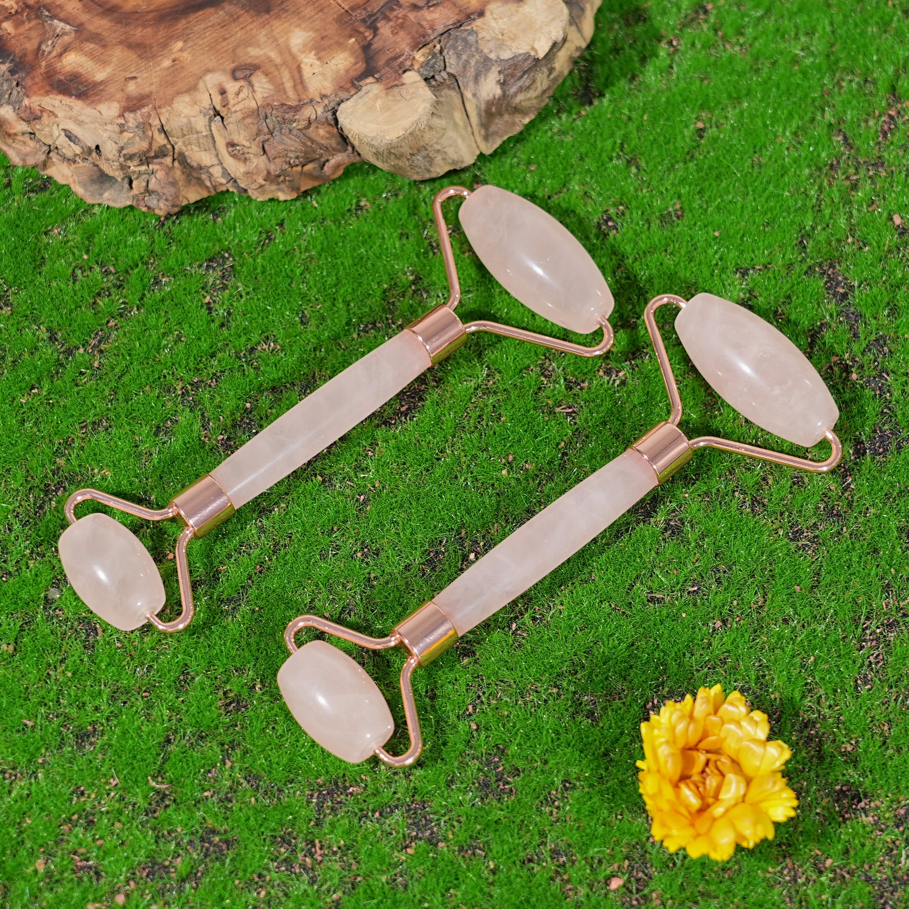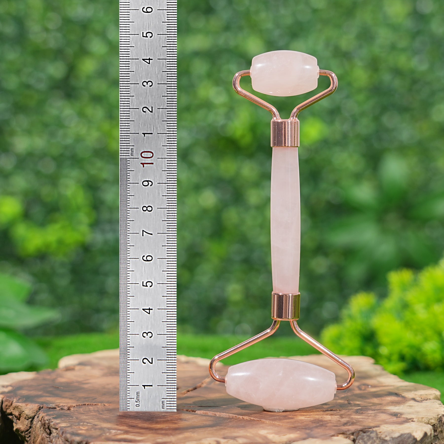 🌟Features:Inspired by the gentle fusion of self-care and earth’s calming energy 🌿, this massage stick is crafted from natural rose quartz—a stone beloved for its soft, dreamy pink hue and soothing vibe. It features two smooth, oval rose quartz rollers (one larger for broader areas like cheeks, one smaller for delicate spots like under eyes) attached to a sleek rose quartz handle, all accented with warm rose-gold metal details that add a touch of quiet luxury.