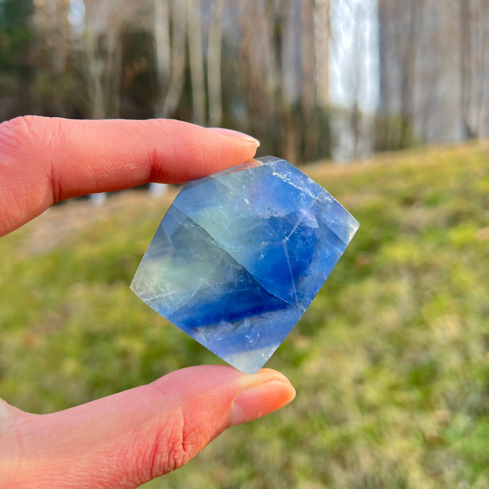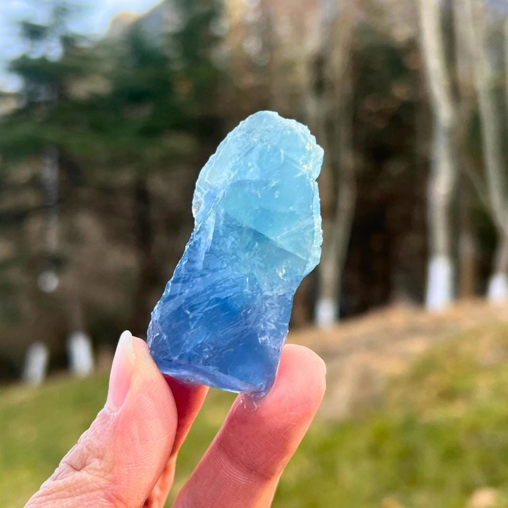 Natural Crystal Neon Blue Fluorite Palm Stone