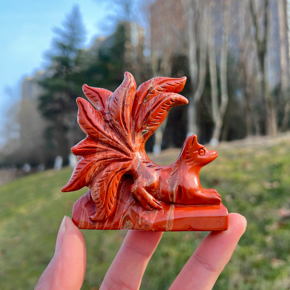 Unique,Natural Crystal Carving Orca Agate Nine-Tailed Fox
