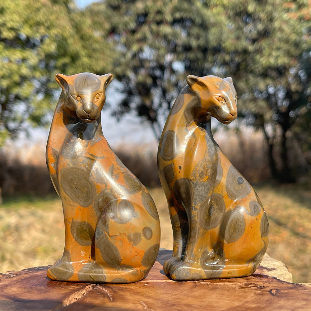 Natural Leopard Skin Jasper Looking Back Leopard Carving