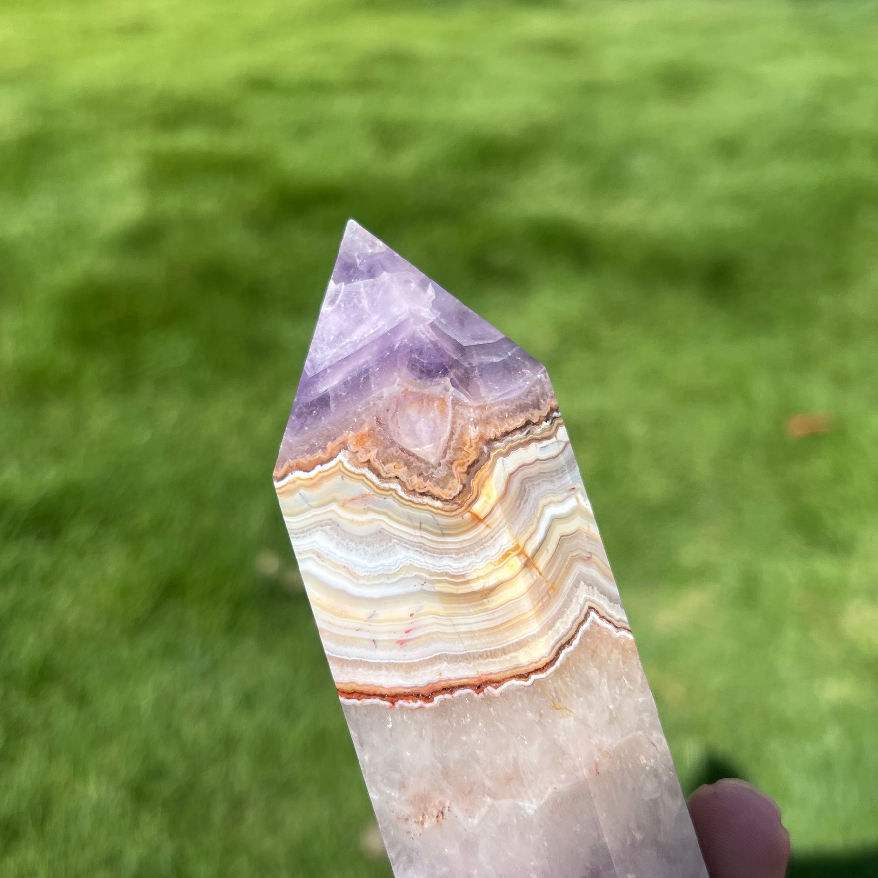 🌟Features: Hand - carved from natural Amethyst Agate, this tower is stunning. It boasts beautiful bands of purple, pink, and earthy tones, with a smooth, polished surface and a pointed shape that looks elegant. Each piece has unique patterns, making it one - of - a - kind. 🌈