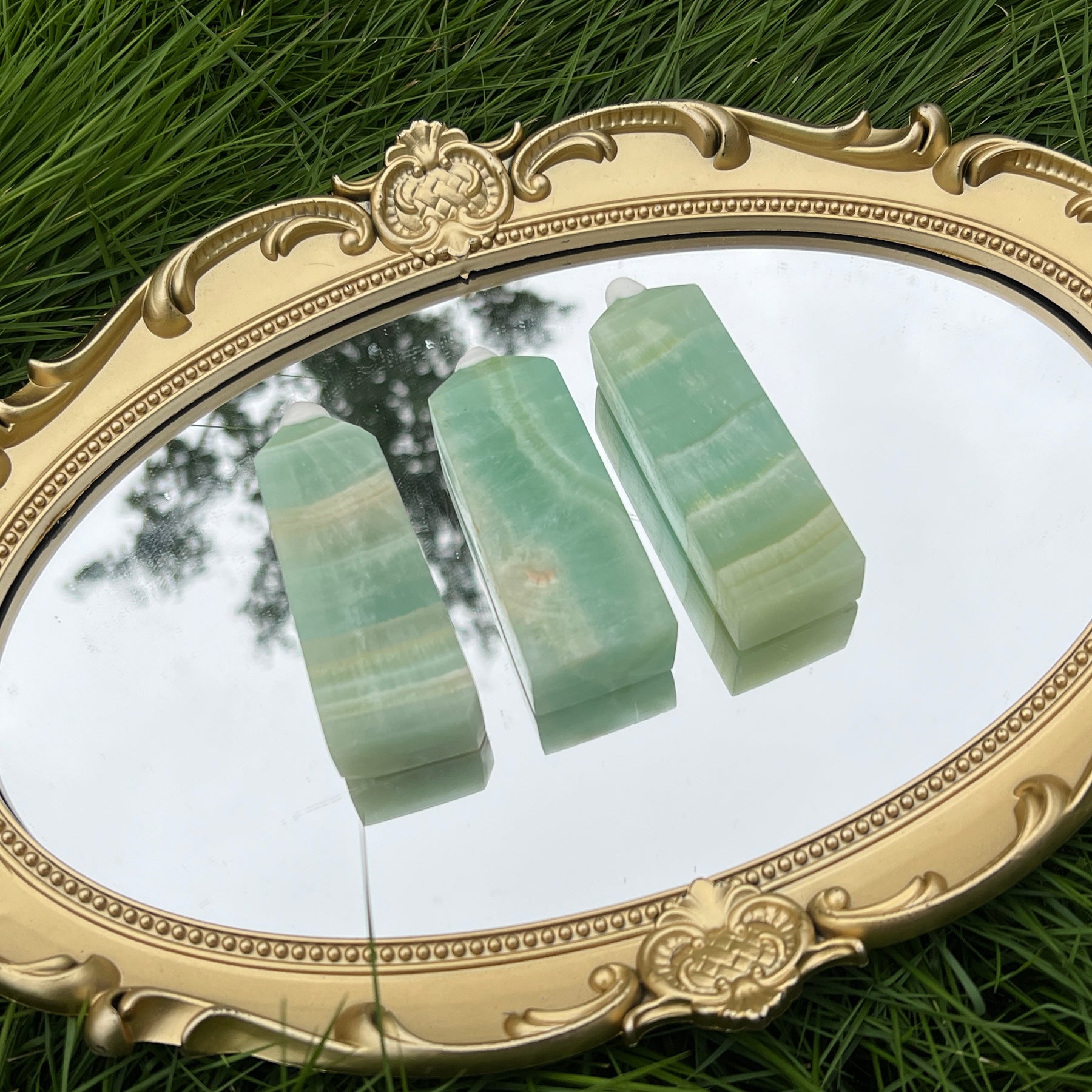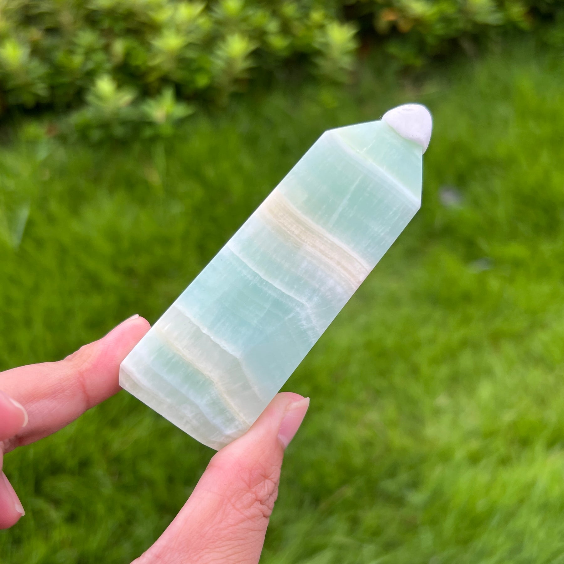 Crafted from Caribbean blue calcite, these Caribbean Blue Calcite Points show a gorgeous soft turquoise - blue hue, with delicate white and light - yellow banding, like gentle ocean waves under a sunny sky 🌊. Each is unique, with calcite's natural layering creating a tranquil look.