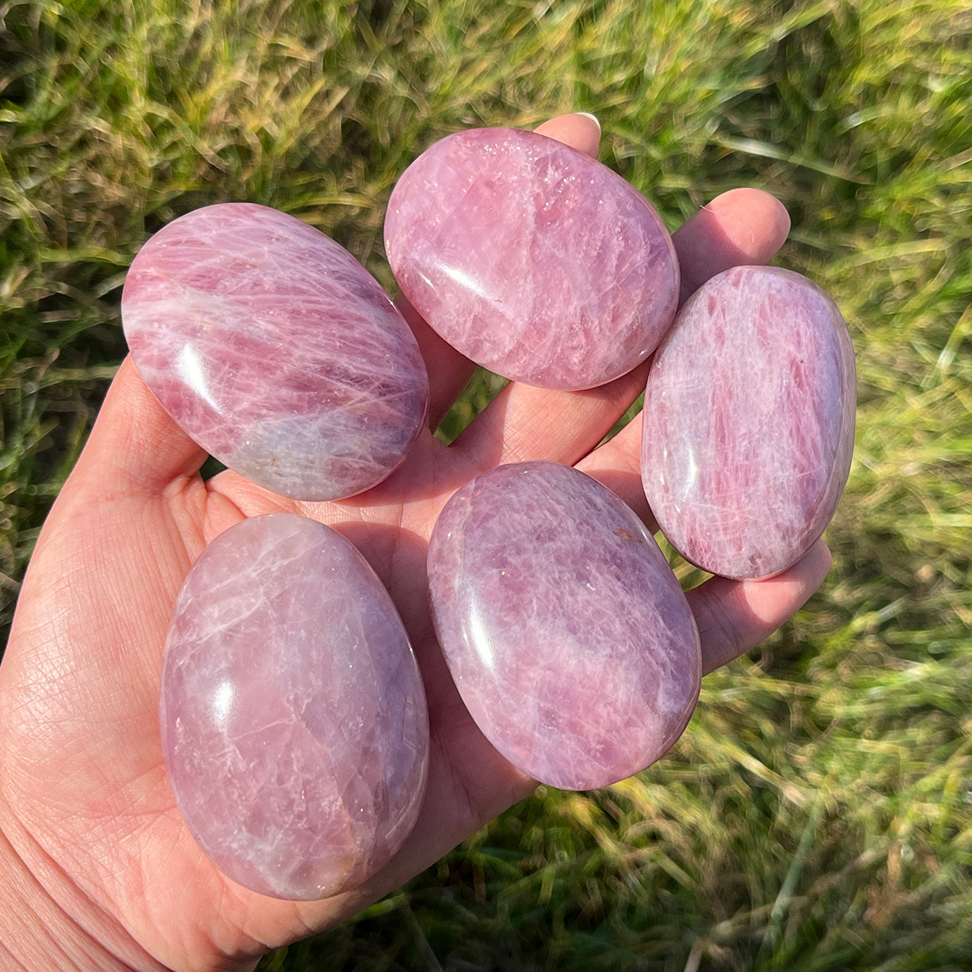 🌟Features:Inspired by the soft warmth of a blooming lavender field—where gentle color meets quiet comfort—these pieces are crafted from natural Lavender Rose Quartz 🌸. Each palm stone boasts a smooth, rounded shape perfect for tucking in your hand or pocket and swirled hues of dreamy lavender-pink, like sunset light blushing through flower petals.  The texture feels velvety-smooth to the touch, balancing delicate beauty with cozy, tactile warmth.