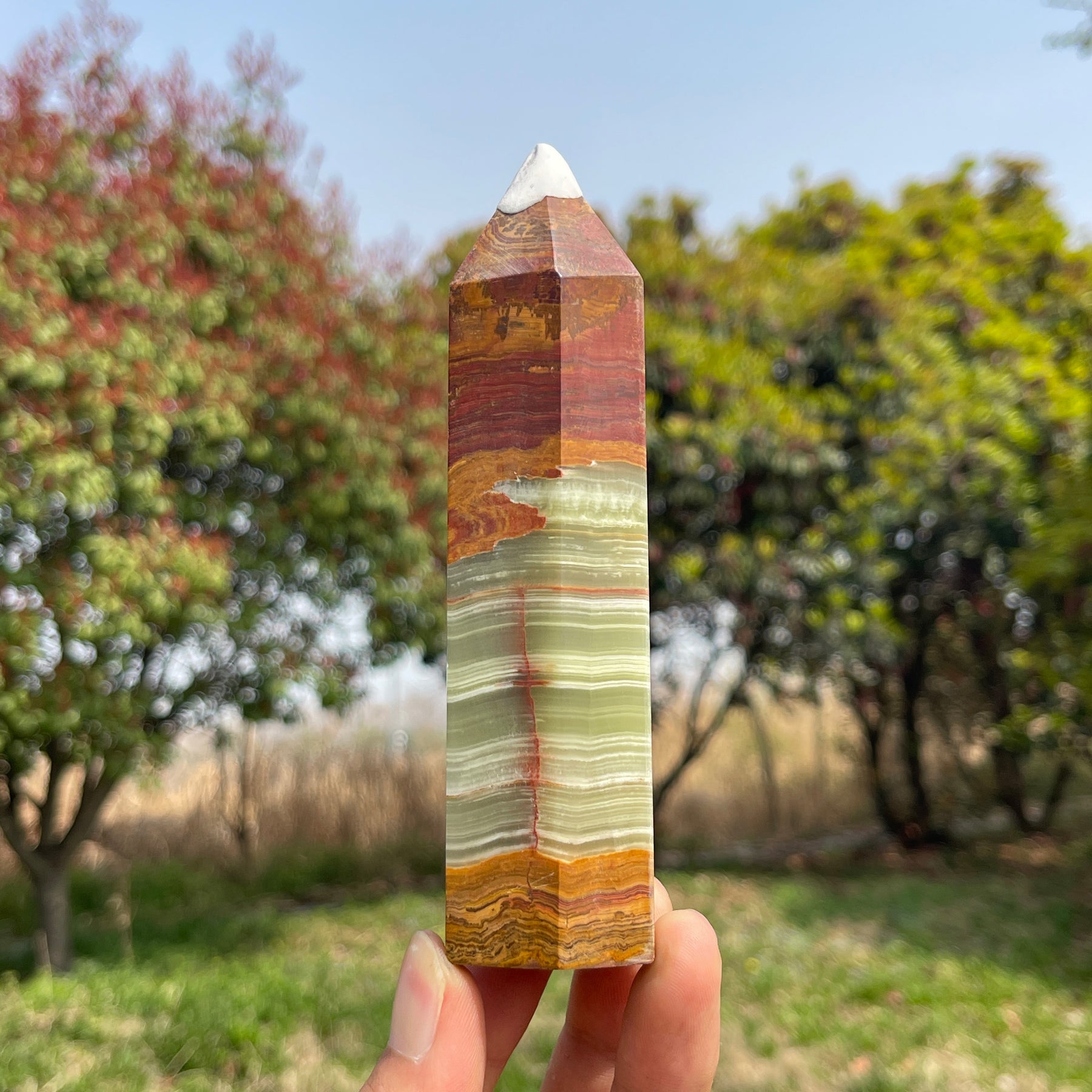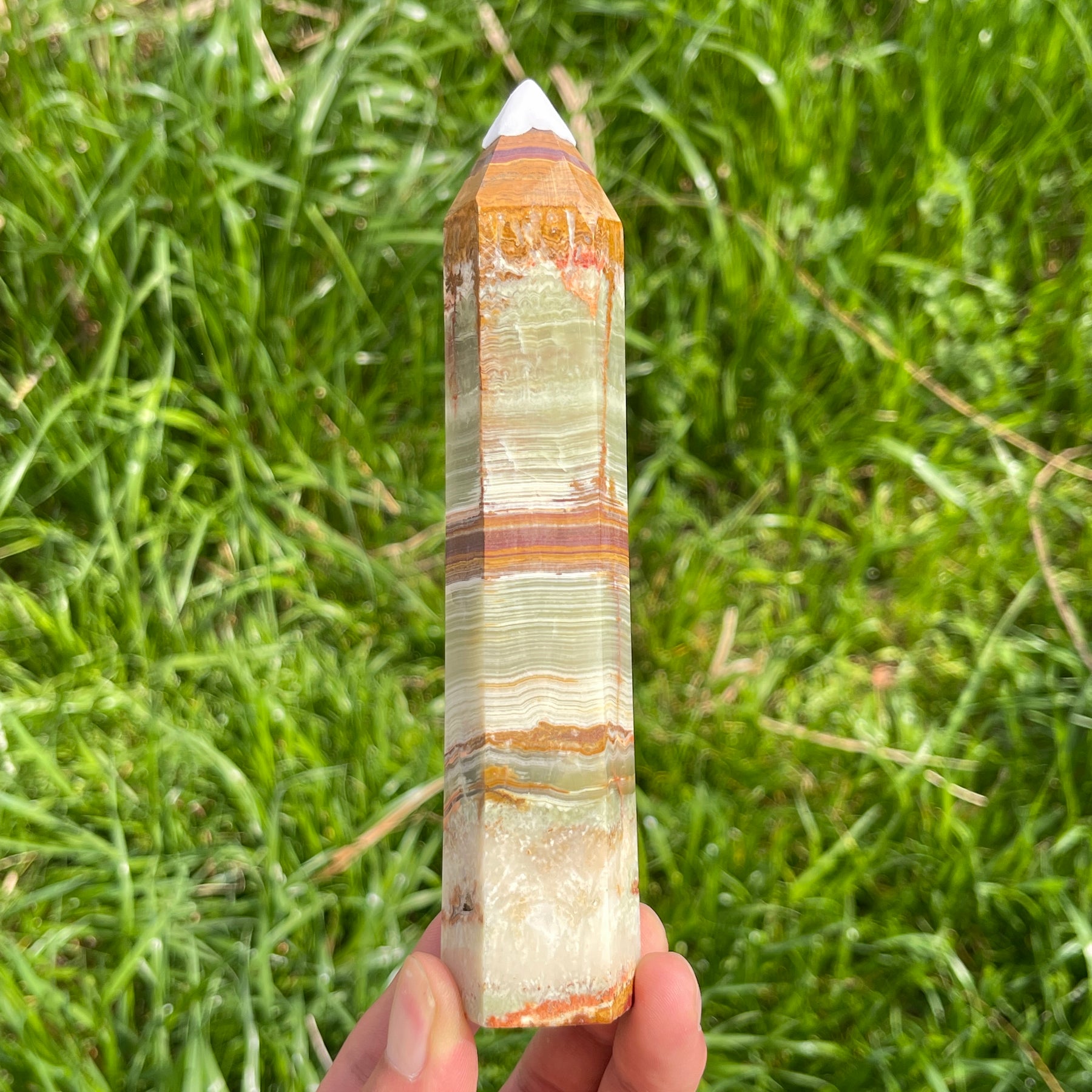 🌟Features:Every piece is entirely one-of-a-kind, with unique banding patterns, subtle color gradients, and natural mineral textures that tell the story of its formation deep within the earth—some feature crisp, horizontal striations, while others boast soft, swirling waves, making each point a distinct work of natural art.The pointed tower design draws from the timeless symbolism of crystal points: they represent focus, direction, and intentional energy flow, built to amplify and channel the stone’s grounding vibrations outward. Afghanistan jade, with its deep connection to the earth and ancient wisdom, pairs perfectly with this shape, creating a piece that feels both stabilizing and spiritually uplifting.