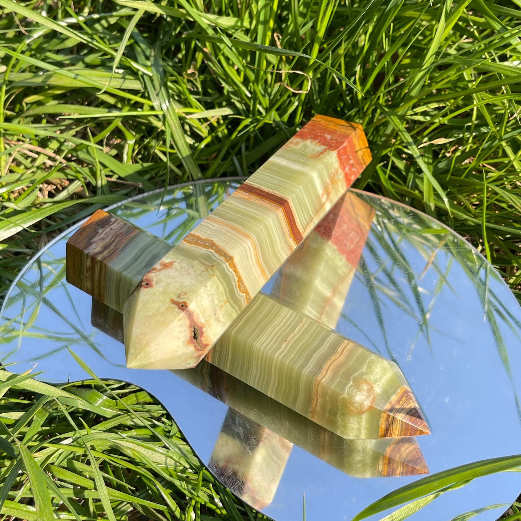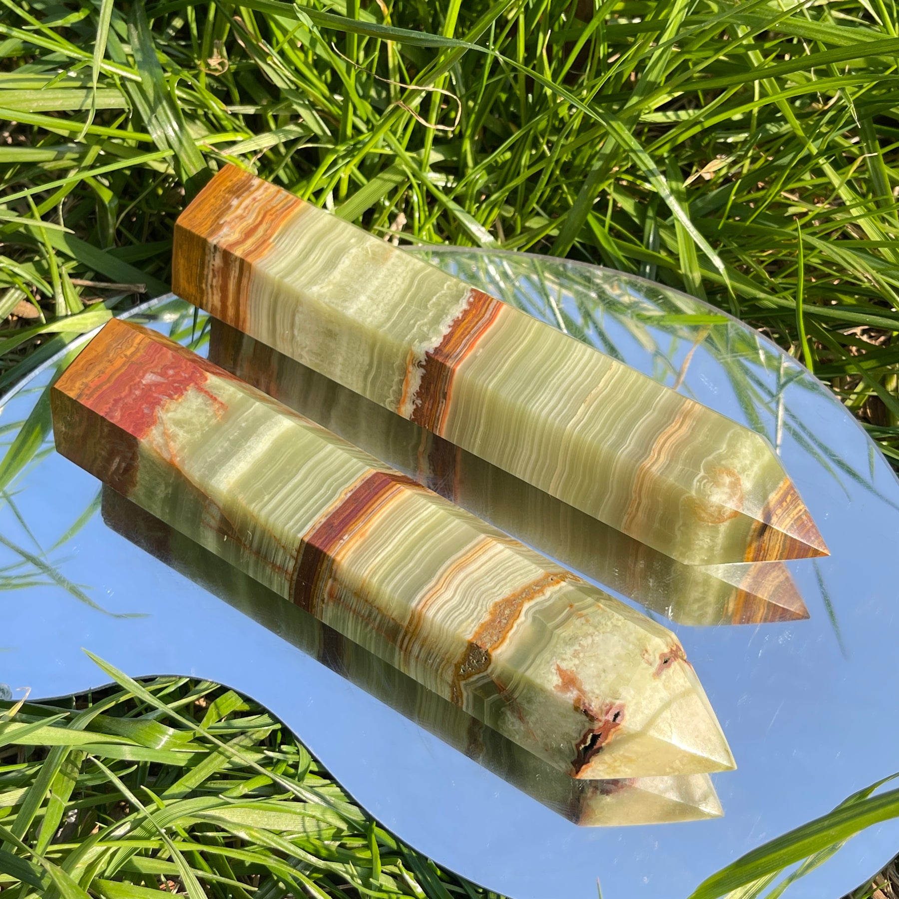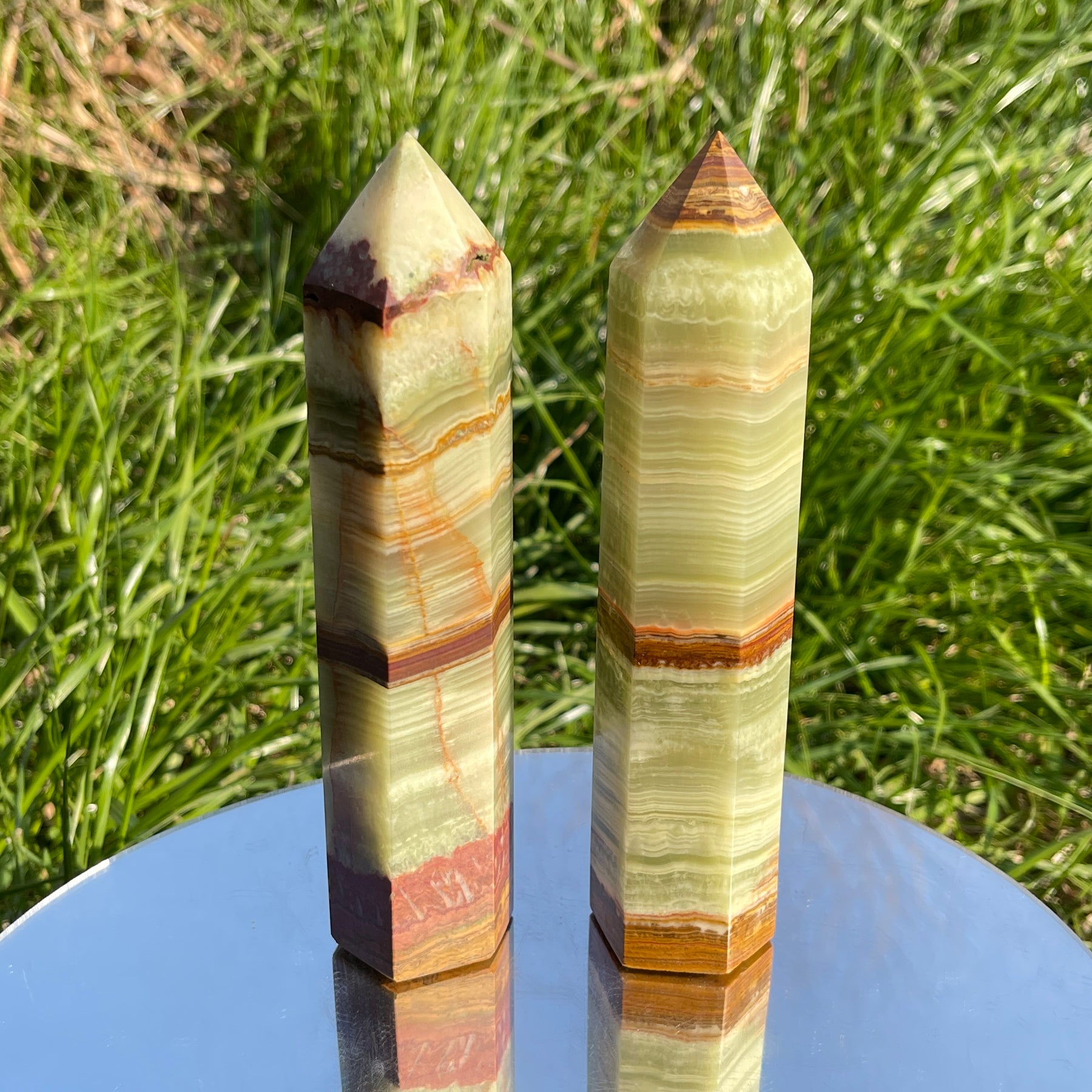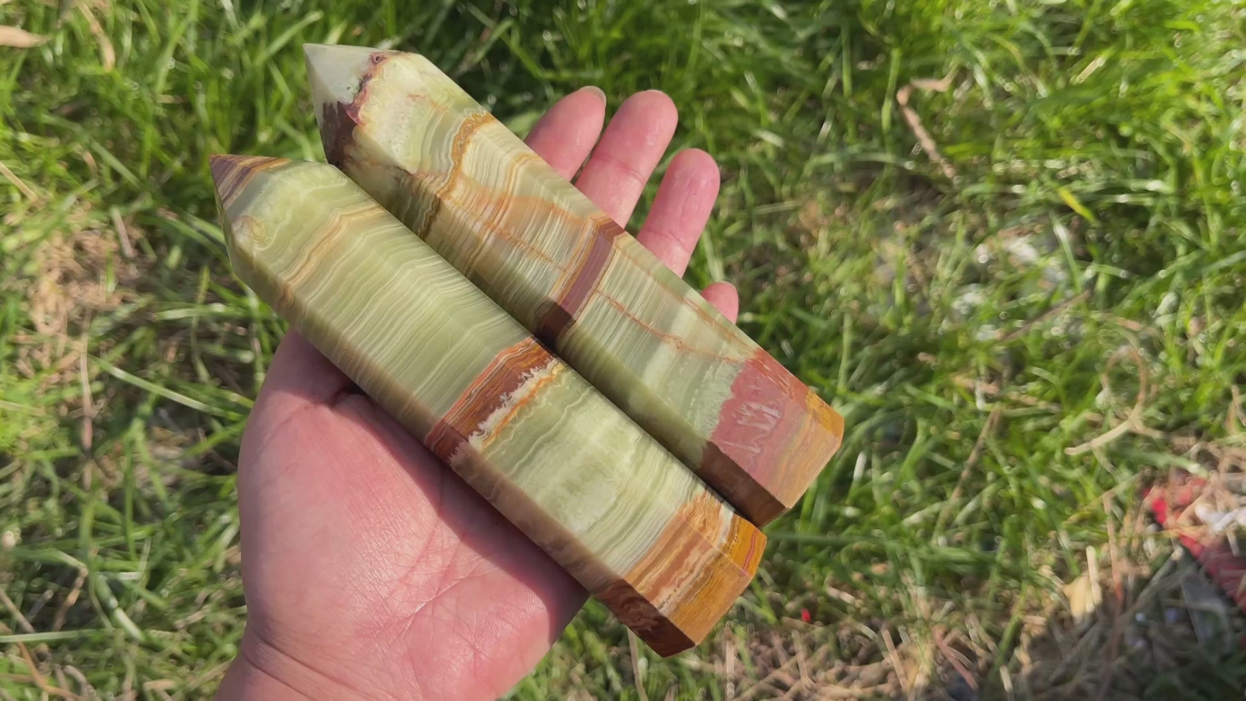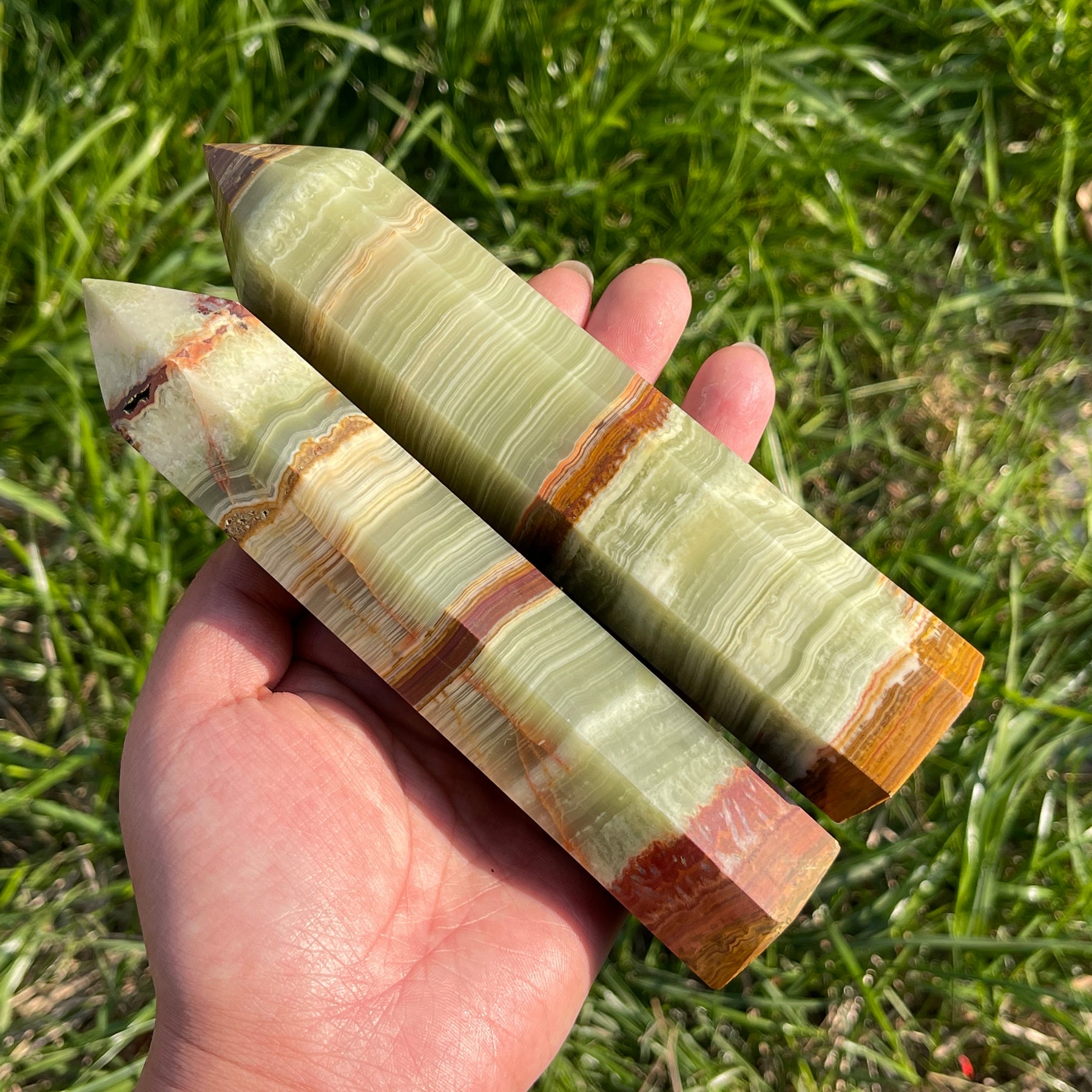 🌟Features: These are natural Afghanistan Jade Point—boasting soft sage-green bases swirled with layered bands of warm amber, rust, and pale cream like a sunset over a mossy forest 🌲. Each point has sharp, clean edges and unique, flowing band patterns, with a smooth, cool-to-the-touch surface that highlights the stone’s ancient, earth-woven texture. Inspired by Afghanistan Jade’s link to “grounded grace” and the point’s symbolism of focused energy: this piece feels like a tiny, portable slice of a calm mountain valley, perfect for display on desks, altars, or as a tactile companion for centered moments.