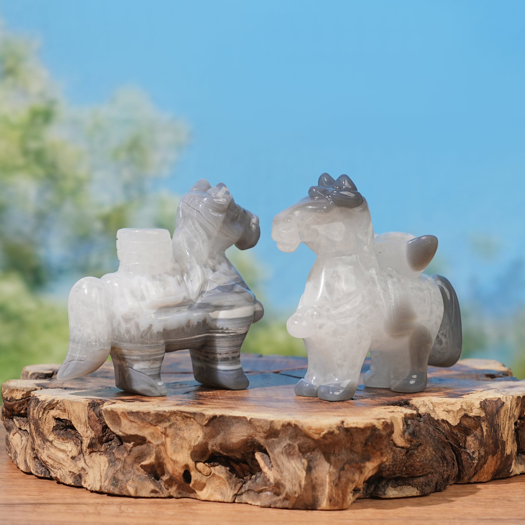 🌟Healing Properties:Agate carries gentle, stabilizing energy: This horse figurine eases stress, fosters focus and adds a calm, balanced vibe to any space. Its smooth shape is perfect for holding during quiet moments to center your mood.