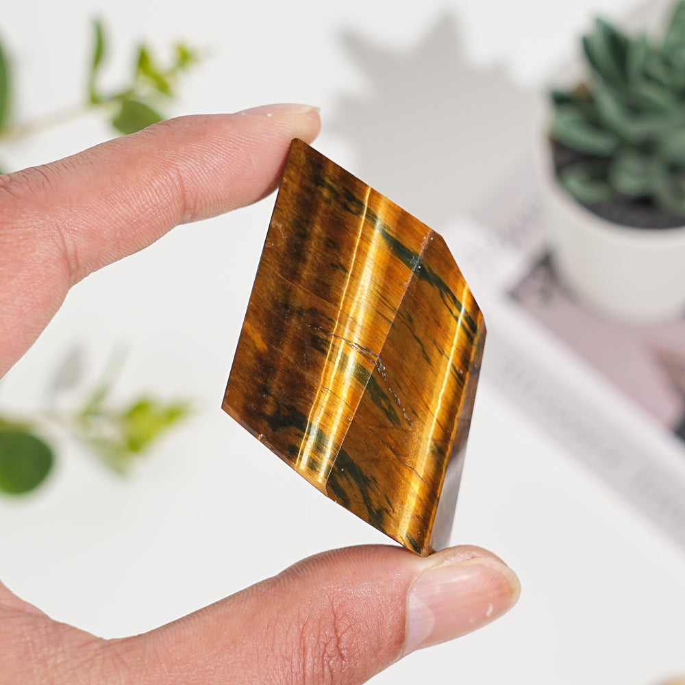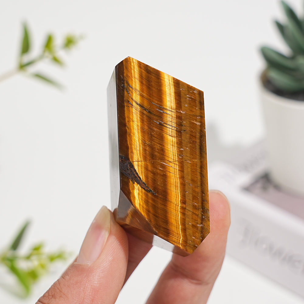 🌟Features:This freeform carving is crafted from natural Blue and Yellow Tiger's Eye, a stone celebrated for its striking banded patterns of warm golden-yellow and deep, earthy blue-green. The surface is defined by fine, parallel striations that catch light, creating a shimmering, chatoyant effect—like sunlight glinting off a tiger’s fur, or the quiet glow of a twilight sky.Each bearing the quiet, unrushed beauty of the earth. The freeform isn’t a lack of design; it’s a celebration of authenticity, a reminder that beauty exists in the unplanned, the organic, and the true to itself.