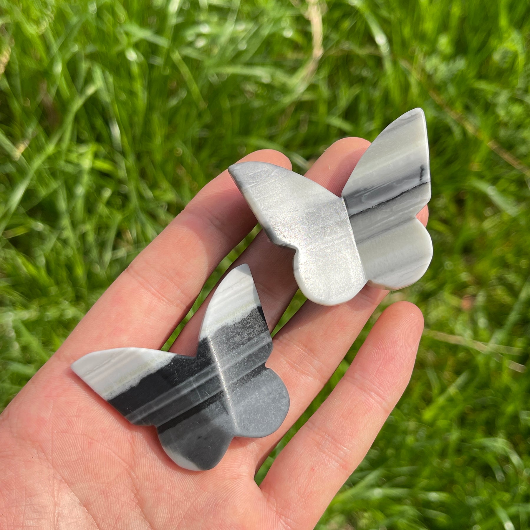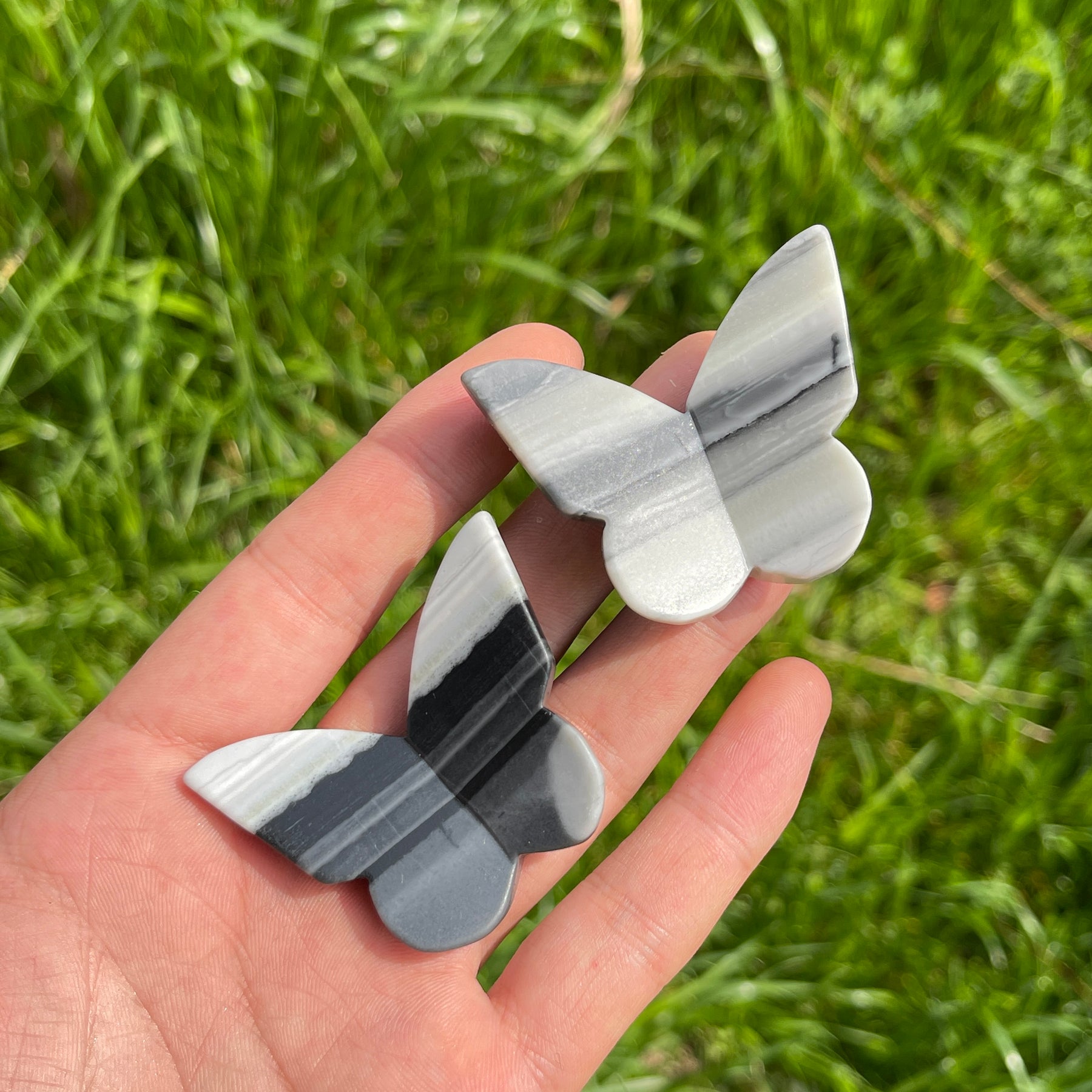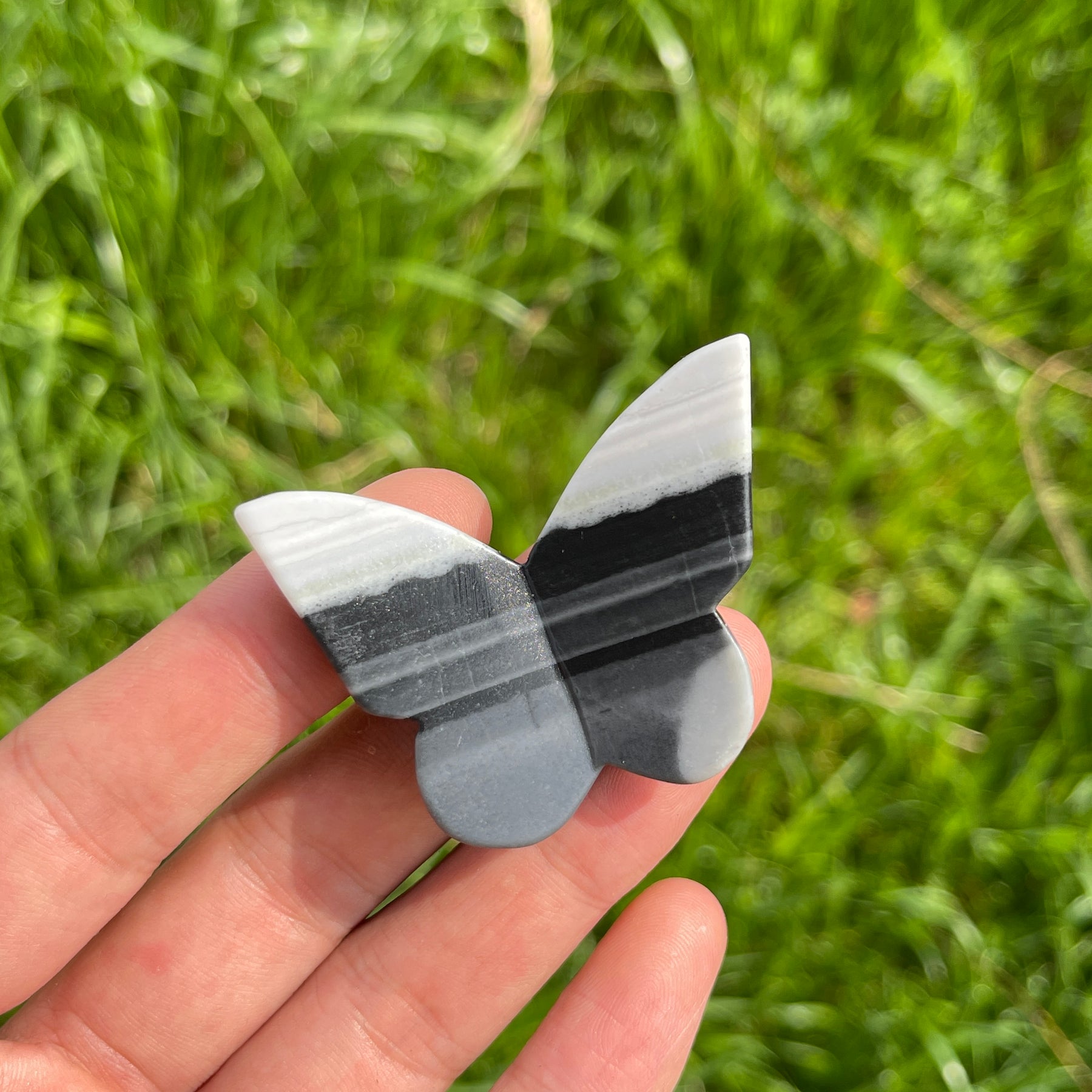 🌟Features:Each butterfly is shaped into a graceful, lifelike form with outstretched wings, showcasing the stone’s signature flowing striations in crisp white, soft grey, and deep black. Every piece is entirely one-of-a-kind, with natural variations in banding patterns, color gradients, and subtle mineral textures that tell the story of its formation deep within the earth—some feature bold, horizontal stripes, while others boast soft, swirling waves, making each butterfly a distinct work of natural art.The butterfly shape is a timeless symbol of transformation, rebirth, and freedom, drawing inspiration from the beauty of nature and the ancient philosophy of Taiji (yin-yang balance).