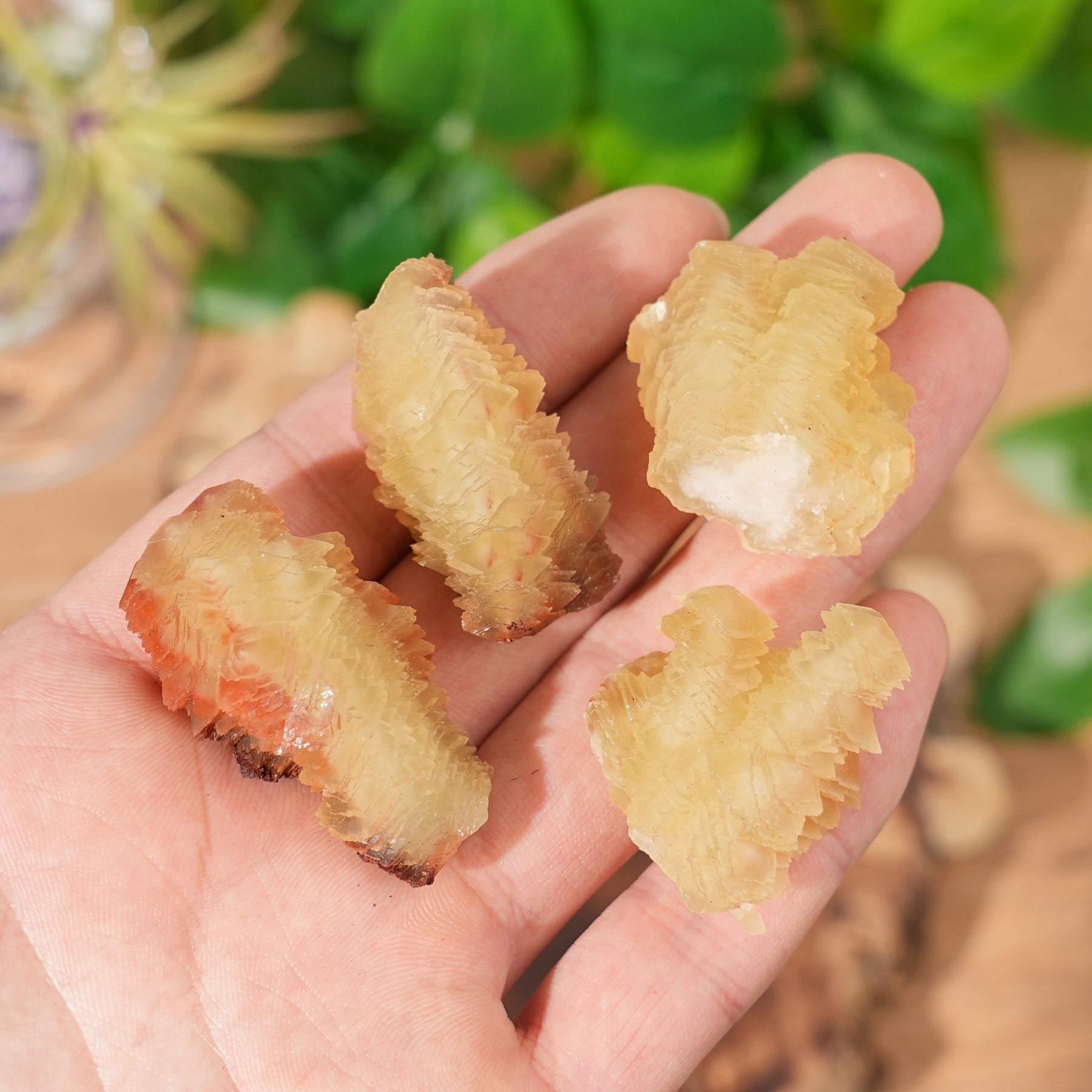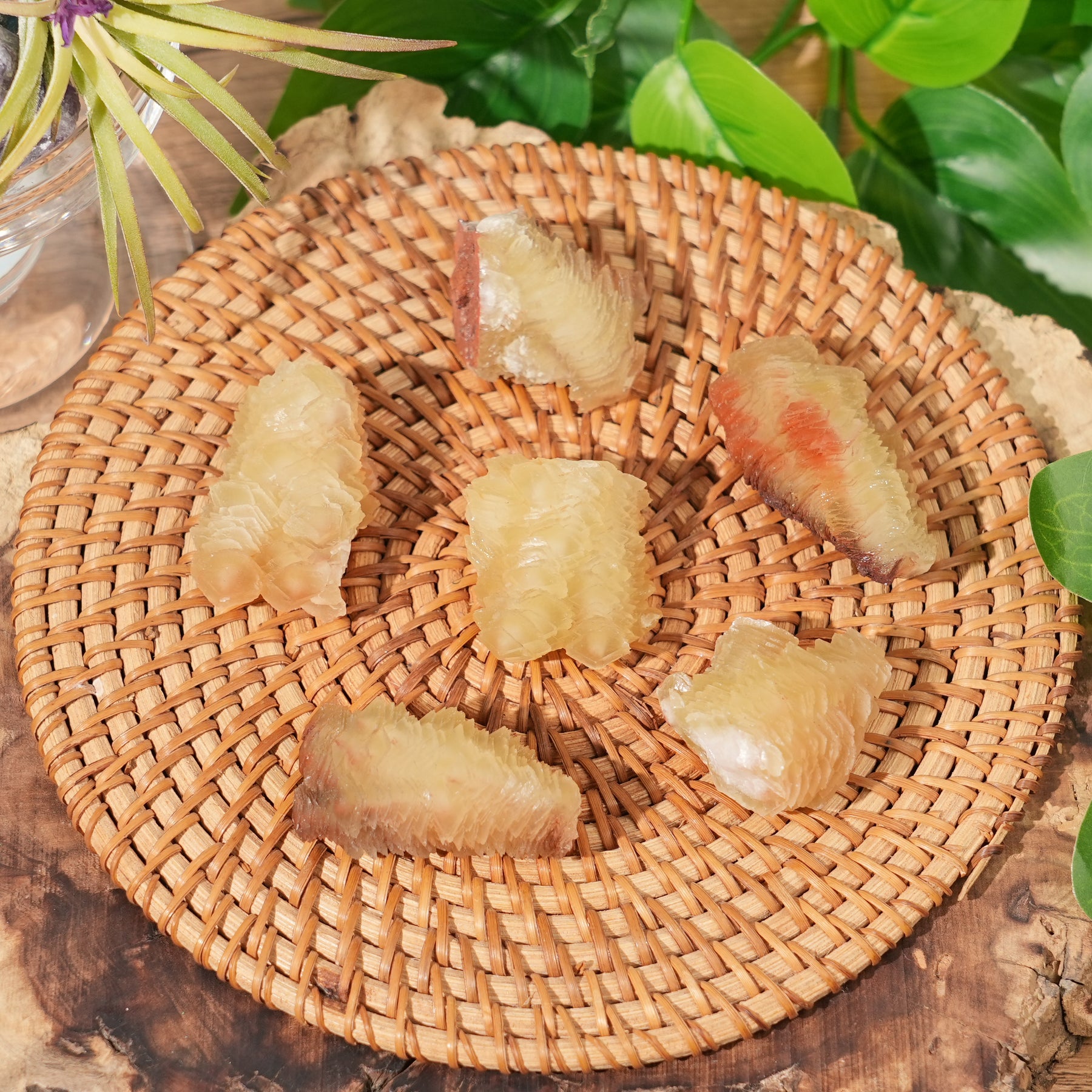 🌟Features:These are genuine natural Pagoda Calcite pieces in their raw, unaltered form—boasting soft creamy yellow-pink hues and striking tiered “pagoda-like” crystalline textures like tiny, earth-sculpted stone spires 🌿. Each piece shows stacked, stepped edges, a subtle glossy mineral surface, and gentle color gradients that make every piece one-of-a-kind. Inspired by its namesake the iconic layered structure of traditional pagodas and its luminous, calm energy: these pieces feel like fragments of a sunlit, peaceful landscape—perfect for display or connecting with quiet natural charm.