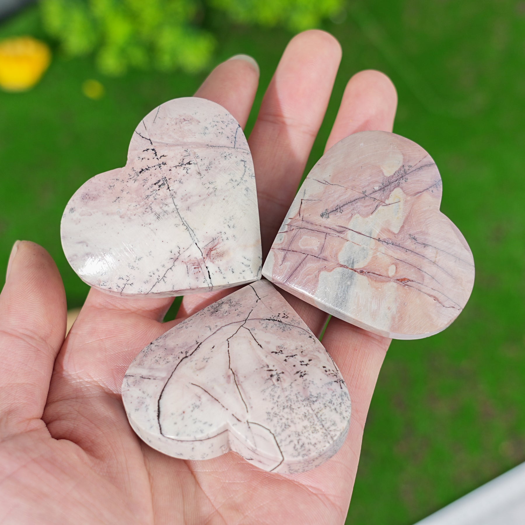🌟Features:Born from the quiet poetry of nature—where stones hold stories in their patterns, and hearts symbolize open warmth ❤️—these pieces are crafted from natural Picture Jasper. Each heart shape carries a one-of-a-kind “canvas” of soft pinks, creamy whites, and thin, dark veins that twist like brushstrokes.Their rounded edges fit perfectly in the palm, blending tactile comfort with the stone’s organic, story-filled charm.