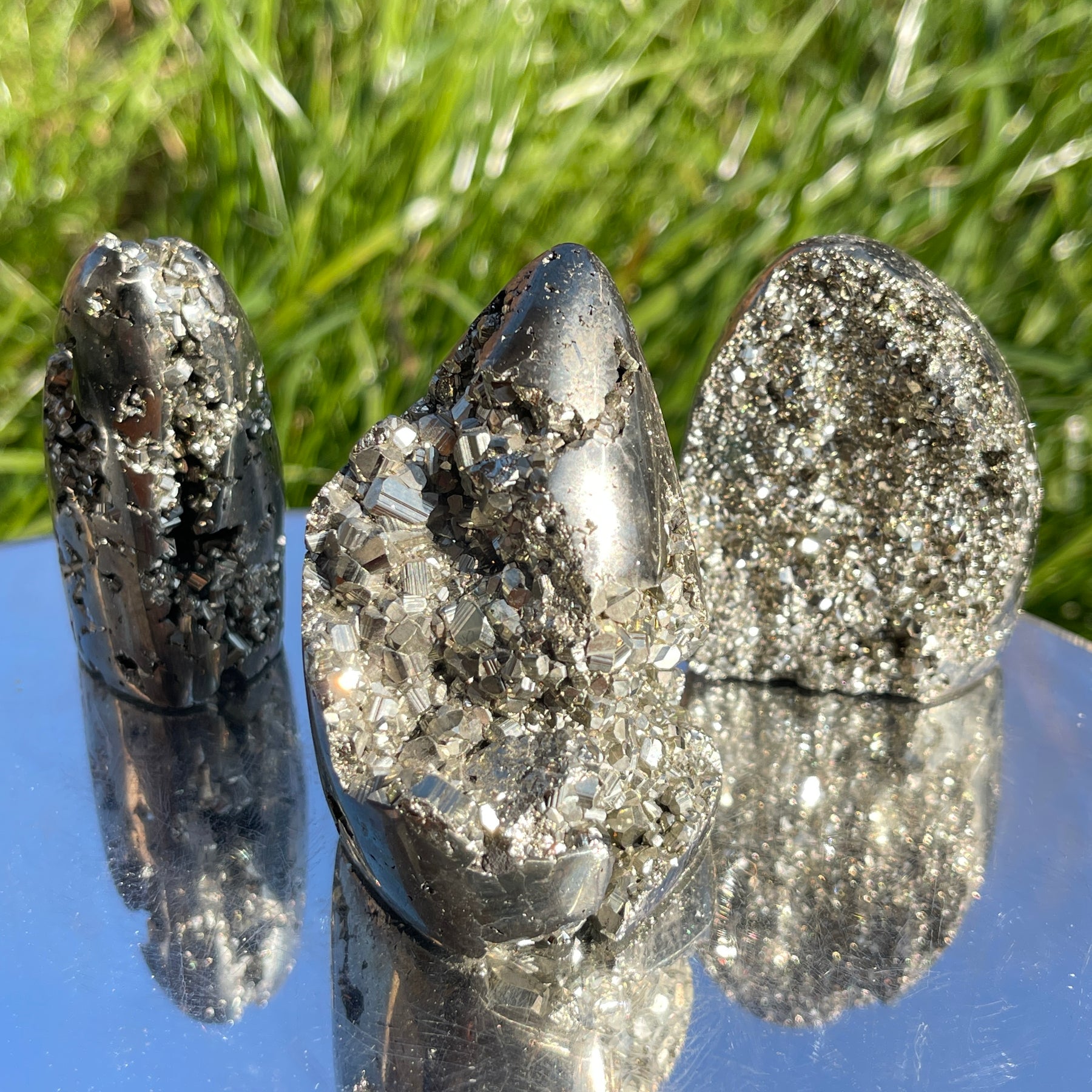 🌟Healing Properties:Pyrite is beloved for its uplifting, grounding energy:Boosts confidence motivation.Repels negative energy.Brings a sense of abundance—its shiny, golden hue is linked to prosperity positivity 🍀