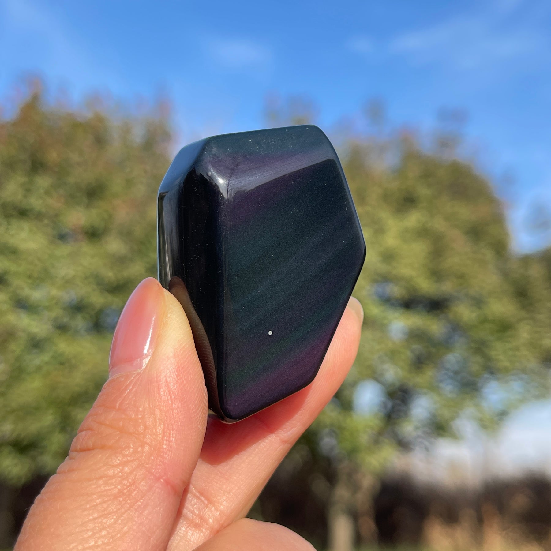 🌟Features:These are natural Rainbow Obsidian pieces shaped into smooth, organic freeform forms—boasting deep black bases that shift to show iridescent rainbow sheens like starlight catching a dark, quiet sky 🌠. Each freeform has soft, rounded edges and unique color variations subtle purples, greens, or blues in light, making every piece one-of-a-kind. Inspired by Rainbow Obsidian’s “hidden light” energy and its raw, earthy shape: this piece feels like a tiny, portable reminder of beauty beneath the surface, perfect for holding during reflection, displaying on a shelf, or tucking into a bag.