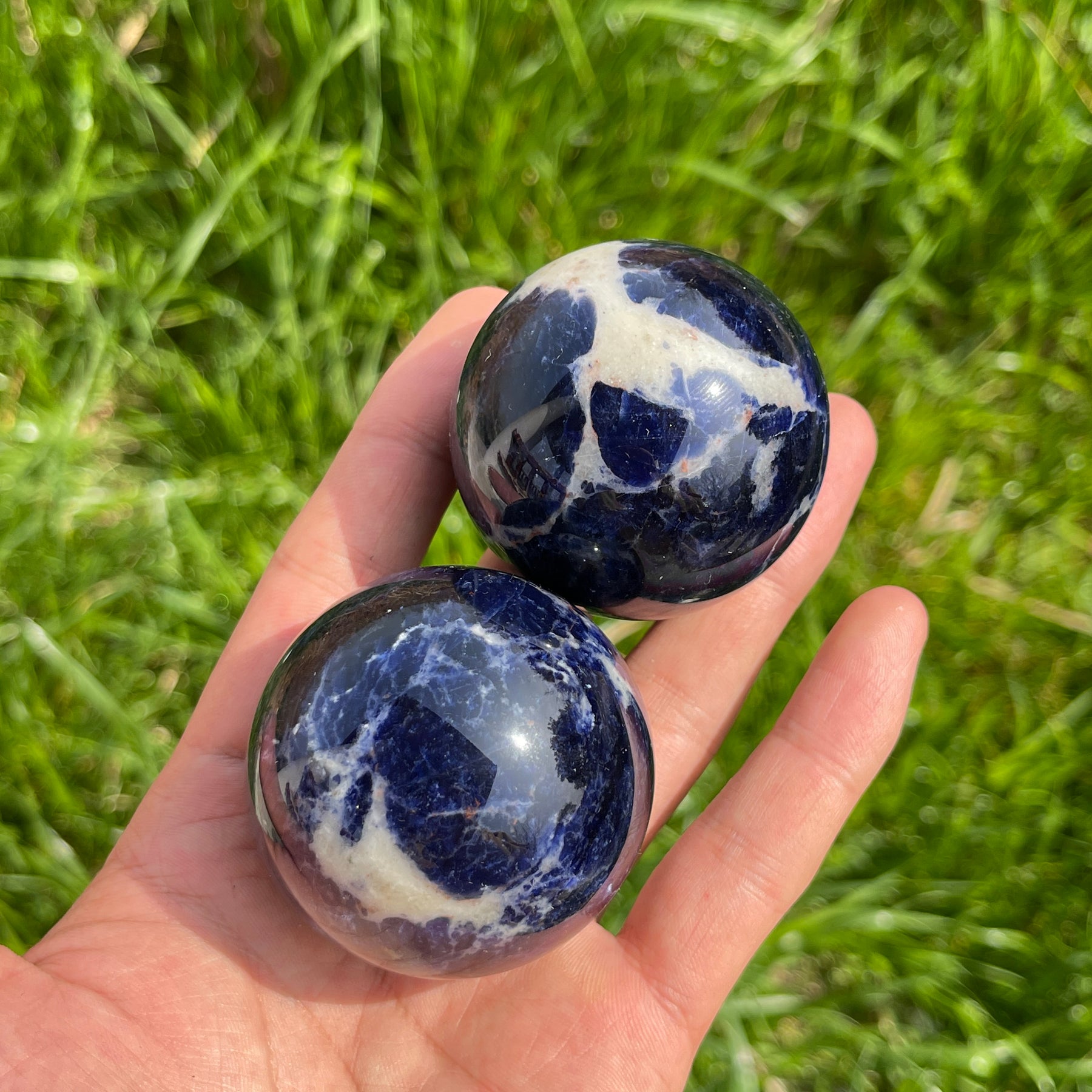 🌟Features:Each sphere takes a perfectly rounded form, showcasing the stone’s signature swirling veining, bold marbled patterns, and one-of-a-kind mineral textures—every piece is entirely unique, with variations in blue intensity, white patch distribution, and subtle natural fractures that tell the story of its formation deep within the earth. Some feature dramatic, ocean-like wave patterns, while others boast crisp, cloud-like white streaks, all set against a deep indigo base that evokes the night sky or the depths of the sea.The sphere shape is a timeless symbol of wholeness, unity, and infinite energy, drawing inspiration from the cycles of the earth and the universe’s endless rhythm. Sodalite, known as the “Stone of Truth and Inner Peace,” pairs perfectly with this shape, creating a piece that embodies balance, clarity, and spiritual calm.