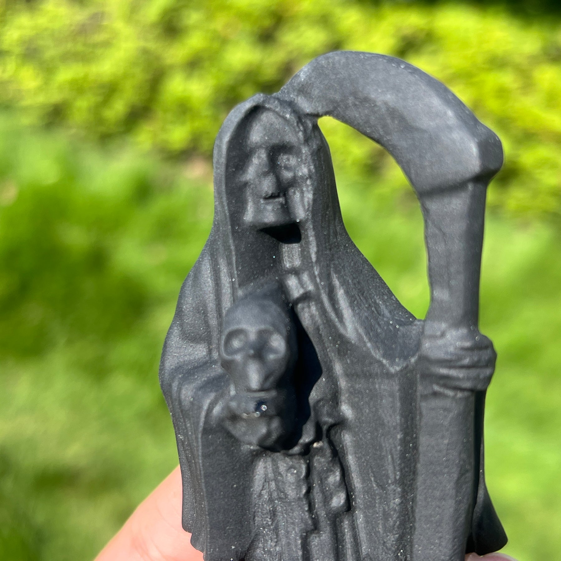 🌟Features: Carved from natural obsidian, this Reaper figurine is striking. With a scythe and detailed robes, it has a mysterious, dark charm. Each piece’s unique obsidian texture makes it one - of - a - kind. ☠️