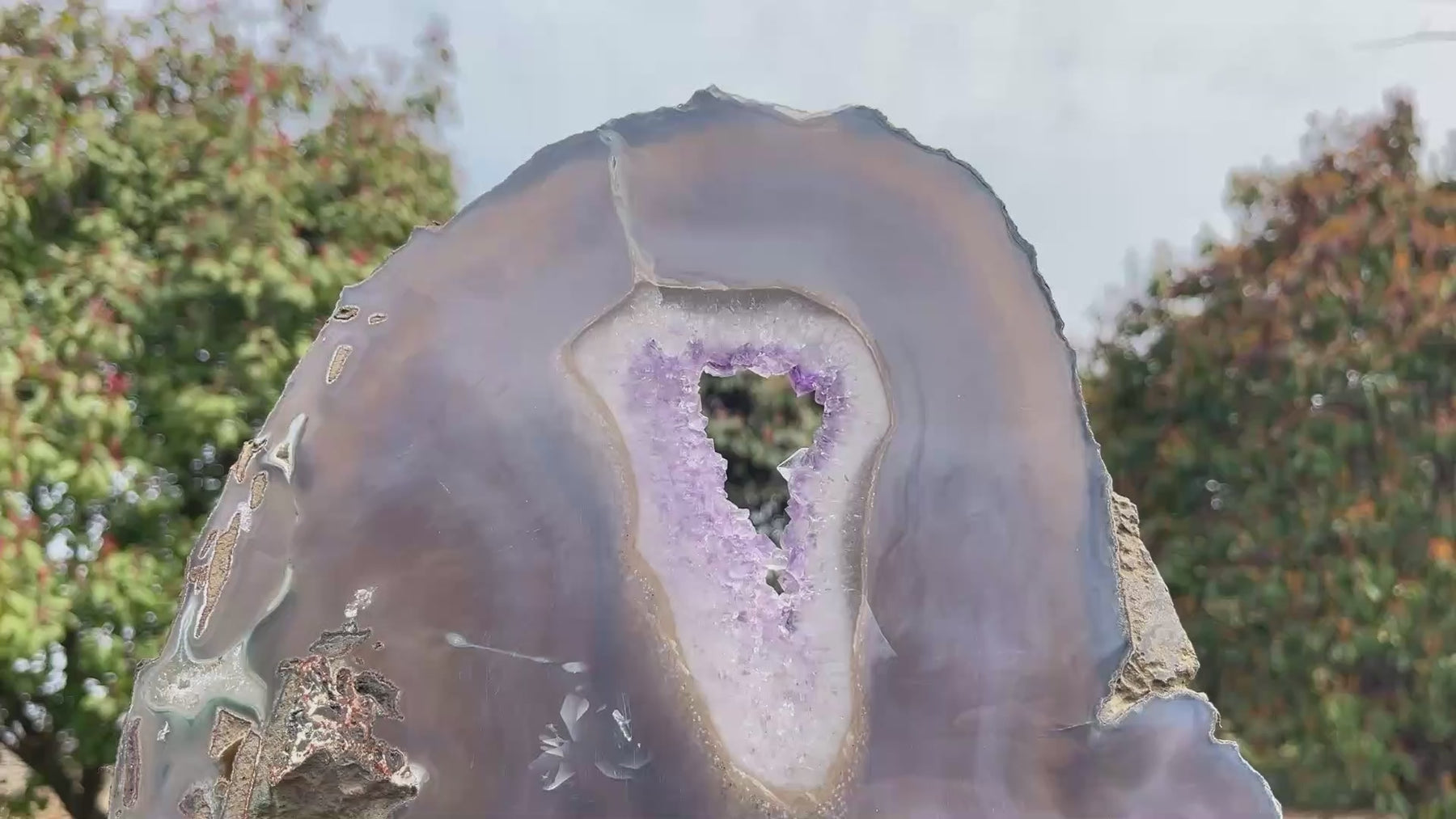 🌟Care Tips:Avoid hitting the slice against hard surfaces to protect its delicate crystal lining and layered patterns.
