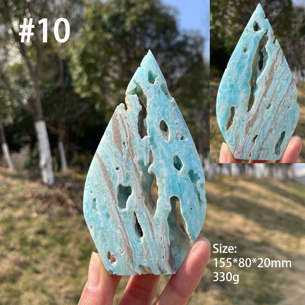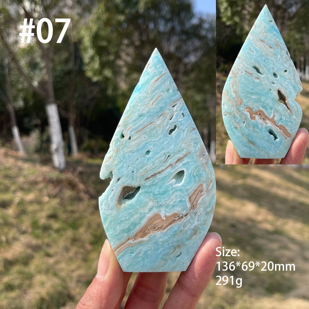 🌟Features:This teardrop is formed from natural hemimorphite, a soft, dreamy crystal celebrated for its pale turquoise and sky-blue hues, often swirled with milky white and subtle earthy veining. Each piece showcases unique, organic patterns—from delicate banded layers to porous, cave-like cavities—making every teardrop a one-of-a-kind reflection of the earth’s gentle creativity.Shaped into a smooth, flowing teardrop form—tapered to a gentle point at the top and curving to a soft, rounded base. The teardrop is a timeless symbol of emotional release, renewal, and the flow of life’s energy. Its compact, handheld size fits comfortably in the palm, making it ideal for meditation, crystal grids, or as a striking decorative focal point.