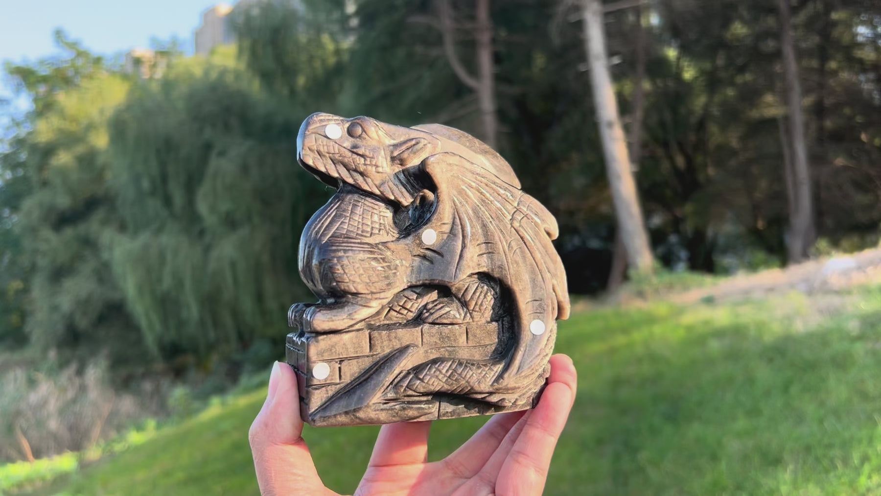 Crafted from natural Silver Obsidian, this dragon features a sleek, metallic-gray sheen with intricate scale and wing detailing—each piece is one-of-a-kind, exuding powerful, mystical charm 🐉🖤✨.