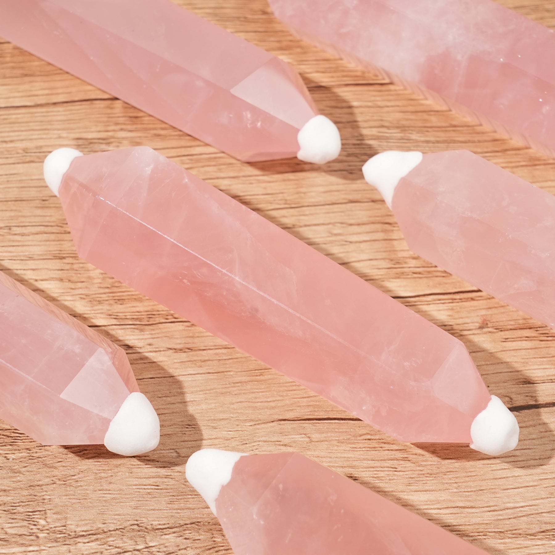 🌟Features: Crafted from natural rose quartz 🌷, this double-tipped crystal features  facets that catch the light beautifully, with a tender pink tone and distinct natural inclusions. It’s a stunning blend of elegance and earthy charm.