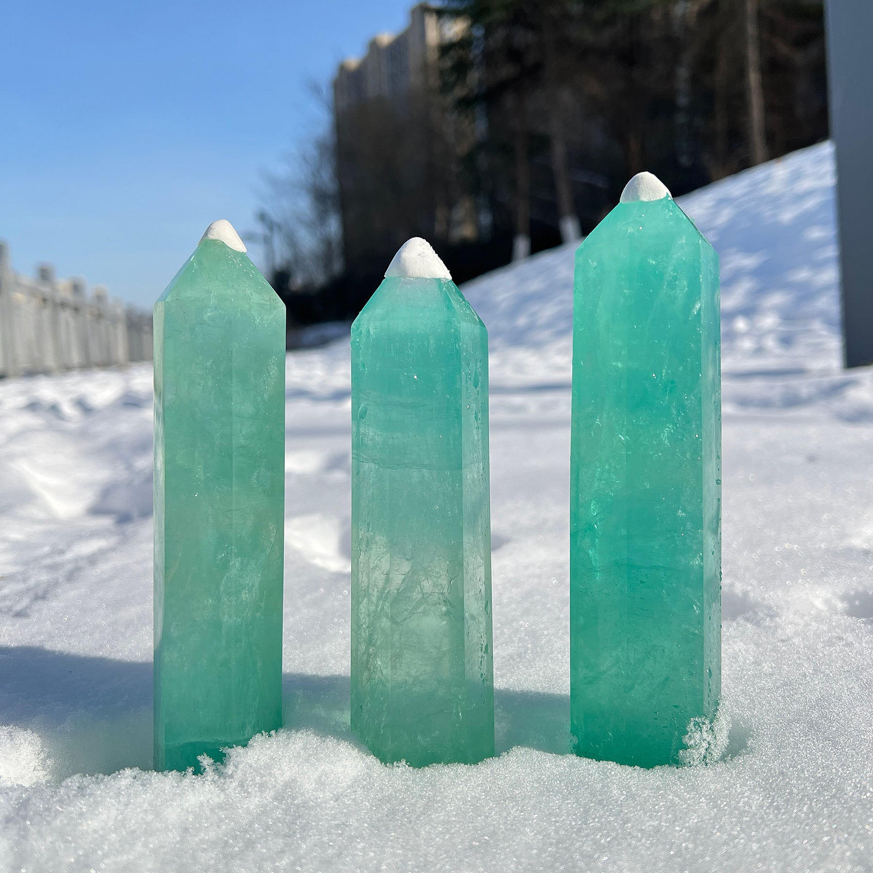 🌟Features:These striking, serene pieces are crafted from natural Green Fluorite—a mineral with vivid, ocean-green hues and subtle, wavy banding that resembles sunlight filtering through tropical waters 🌊. They are shaped into tall, faceted points with a smooth, angular form and a pointed tip,designed to stand stably on a desk or altar as a powerful energy tool.This design blends calming energy with intentional depth: the tall, faceted form evokes the clarity of channeling your focus and purpose, while its ocean-green hues mirror the harmony of balancing mental clarity and emotional calm.