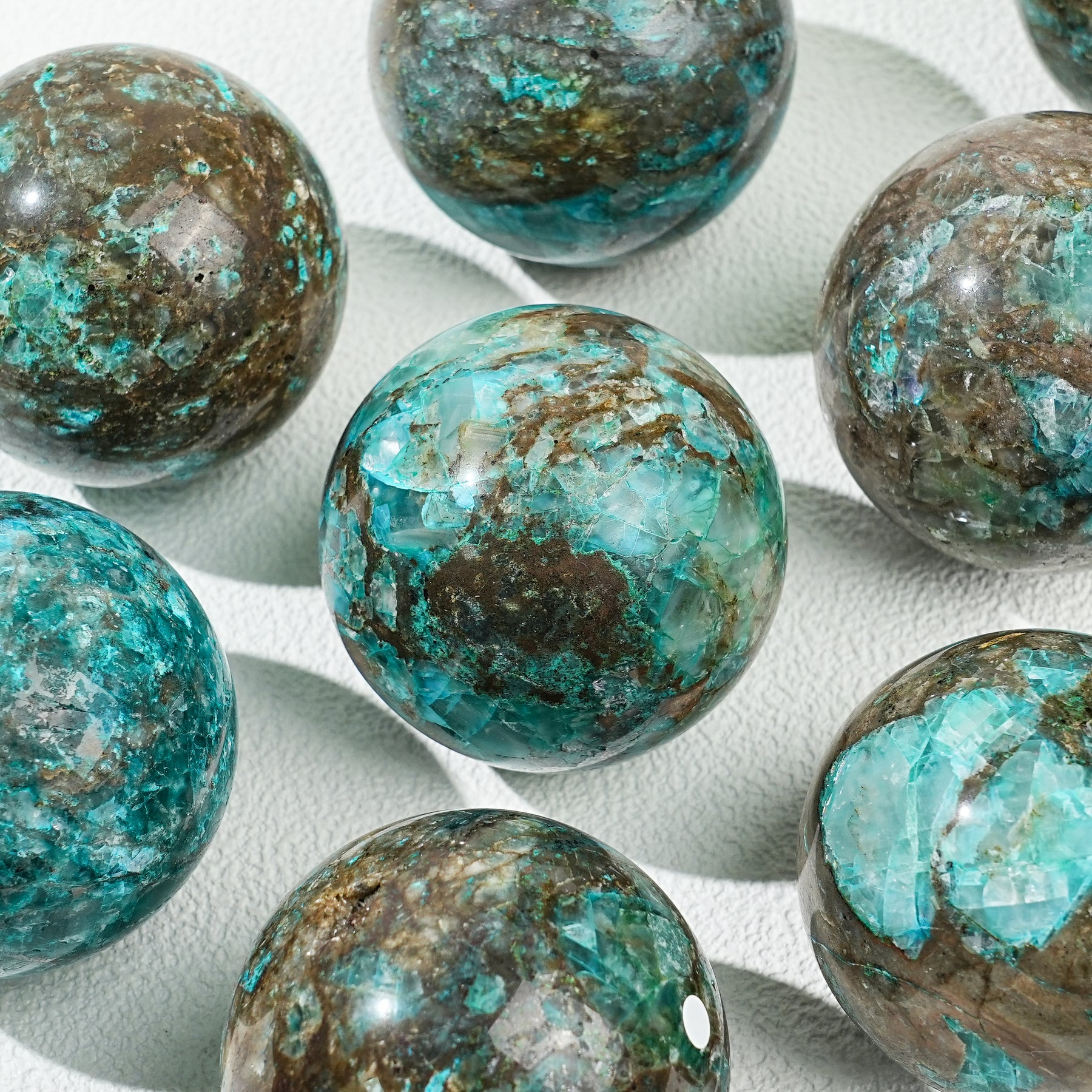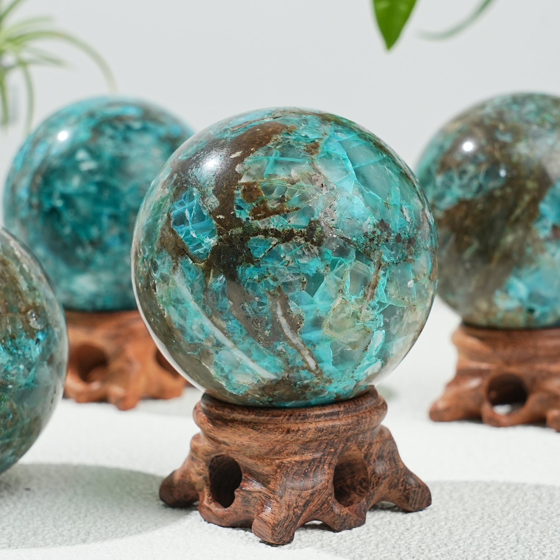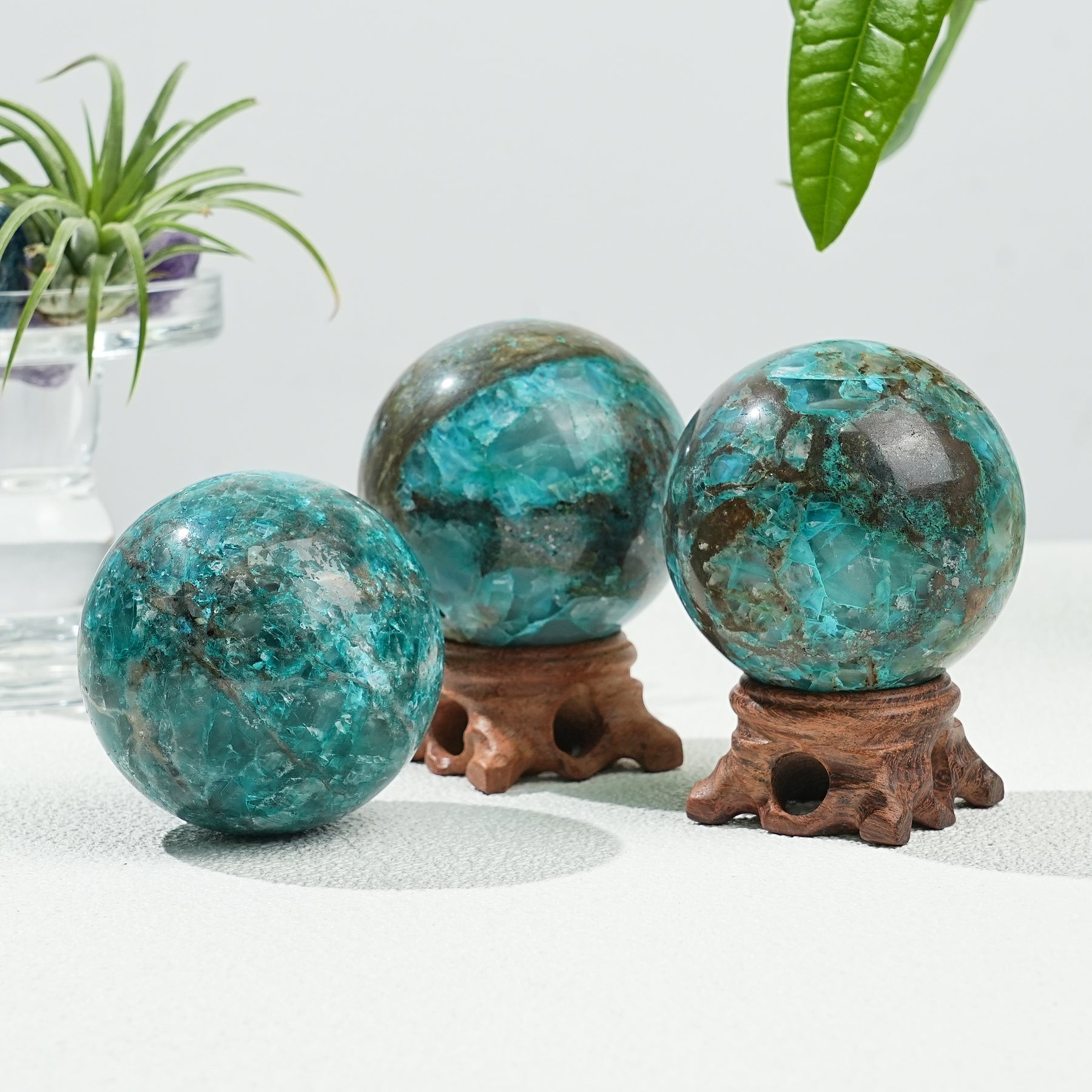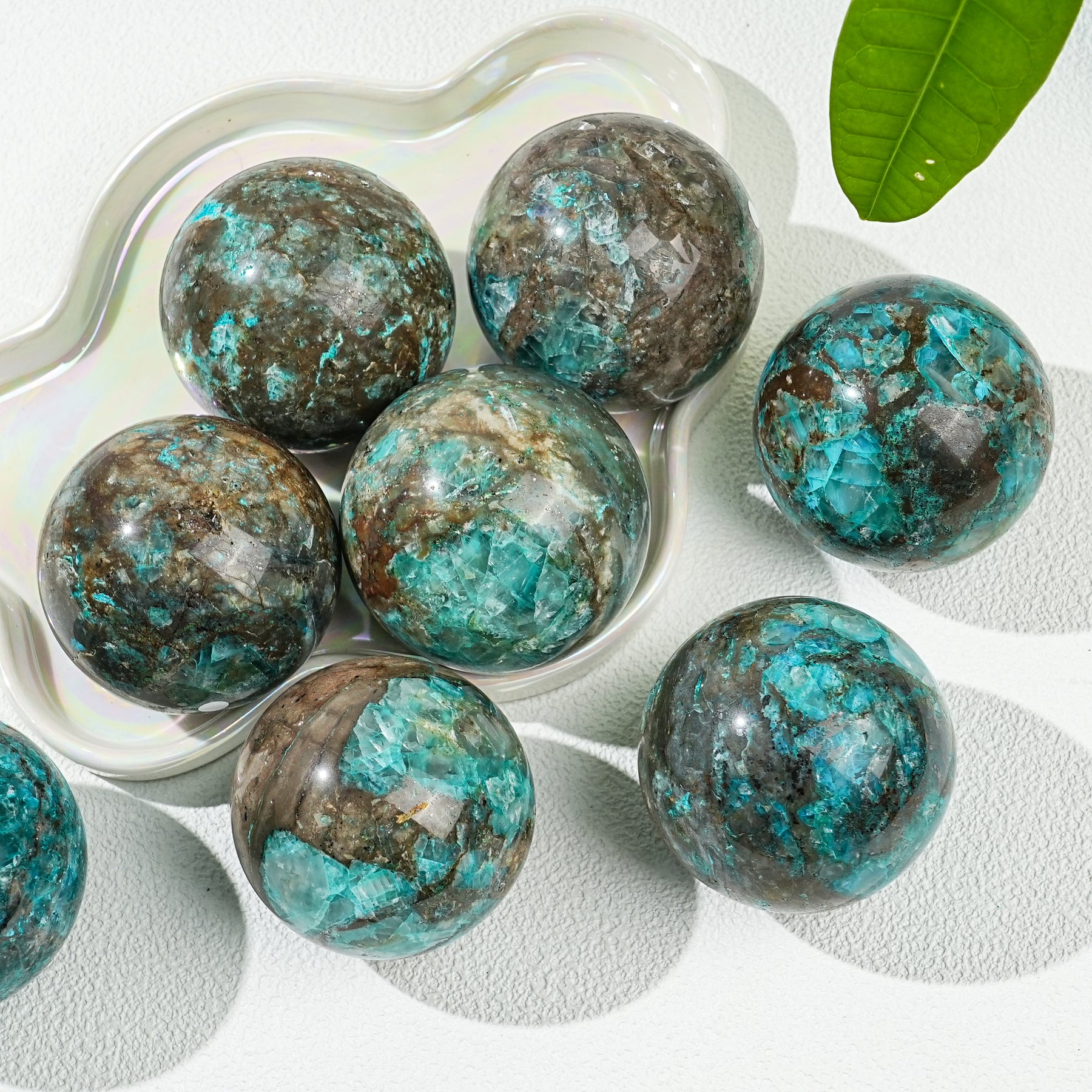 Crafted from natural Fluorite With Gibbsite, these spheres feature vibrant teal hues with unique, marbled patterns—each piece is smooth, , and one-of-a-kind, exuding a cool, earthy charm 🔮💧✨. Their spherical shape adds a touch of harmonious elegance to any space.
