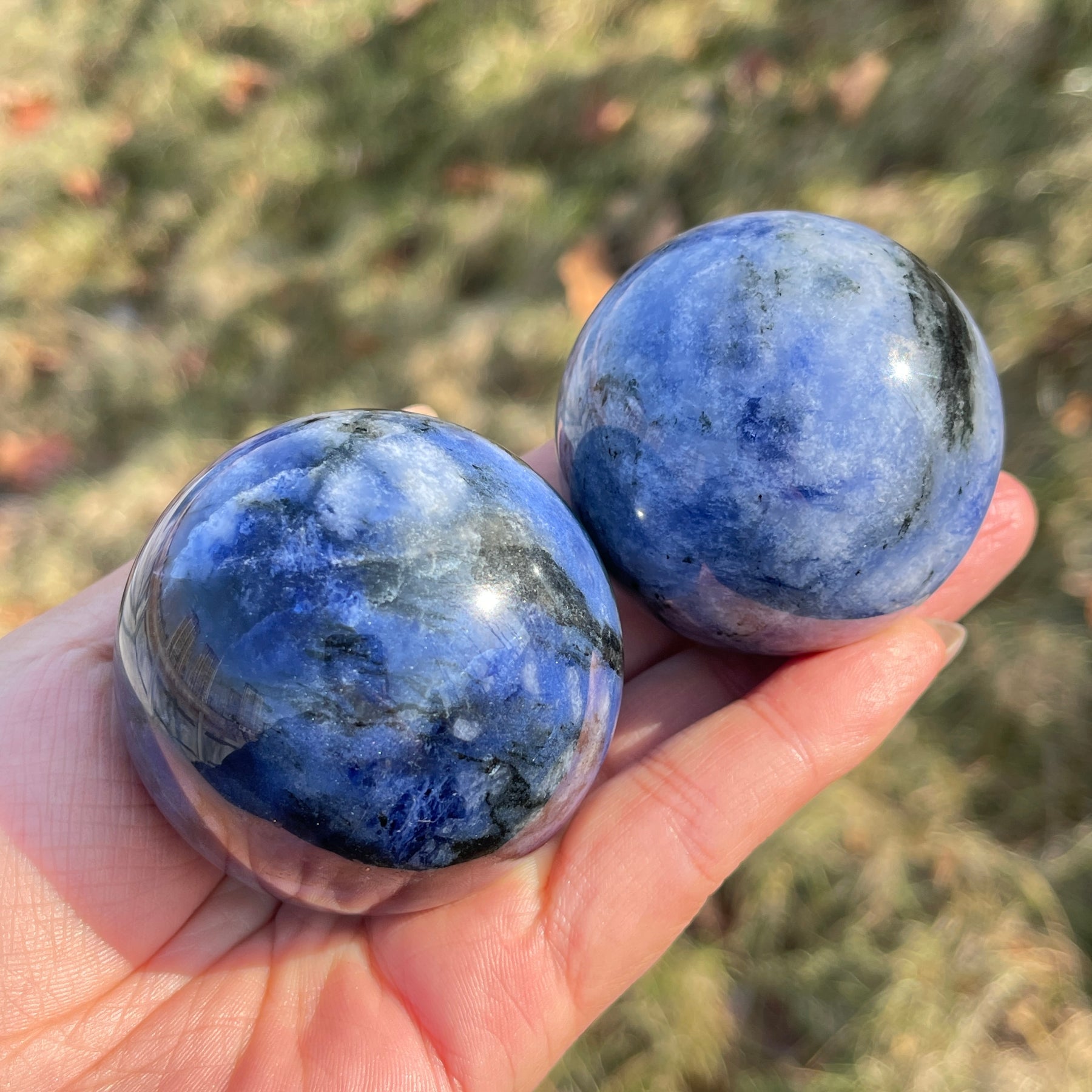 🌟Features:These striking, polished pieces are crafted from natural Blue and White Porcelain Sodalite—a mineral with a deep, rich royal blue base, swirled with contrasting white and black inclusions that resemble the classic patterns of hand-painted porcelain 🎨. They are shaped into perfectly smooth spheres that fit comfortably in the palm, creating a tangible symbol of harmony and wisdom.Inspired by the sphere’s symbolism of wholeness, balance, and unity,this design blends grounding energy with timeless beauty: the bold blue evokes the depth of the night sky, while the white patterns mirror the clarity of a calm mind.