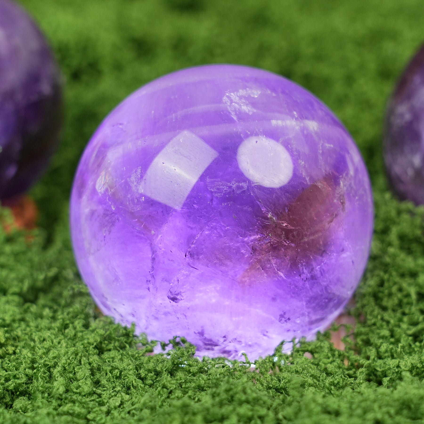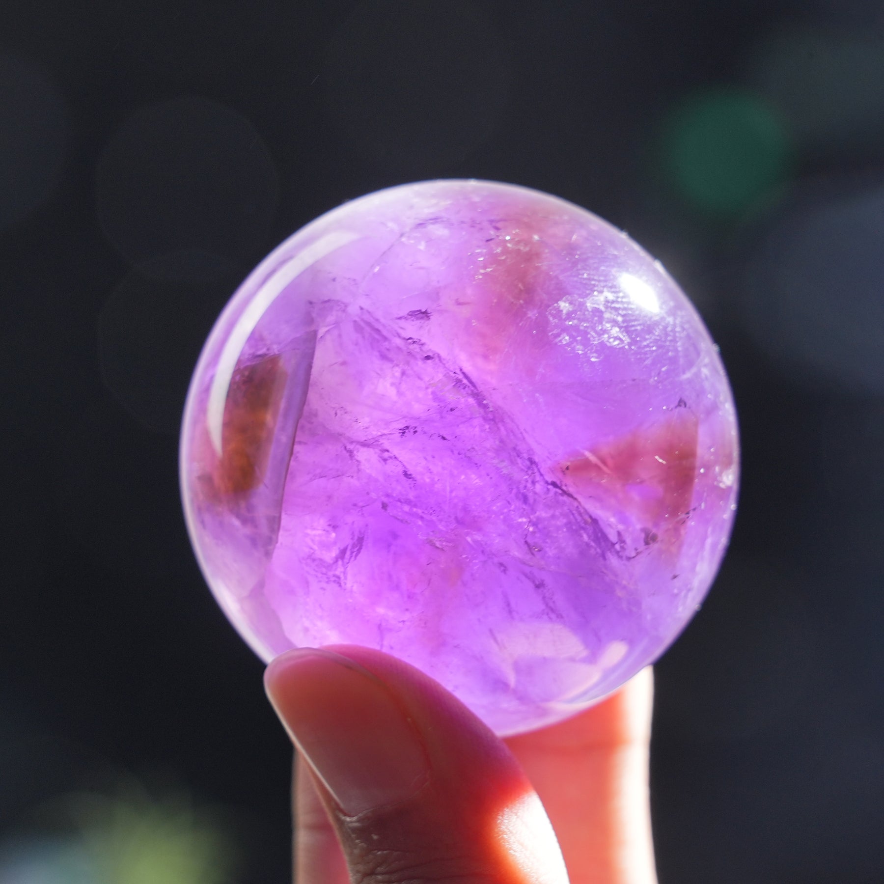 Crafted from natural ametrine, this sphere features a stunning blend of purple and golden hues, with a polished, glossy surface that shimmers beautifully in light 🔮. Each sphere has unique patterns, making it a one-of-a-kind decor piece.