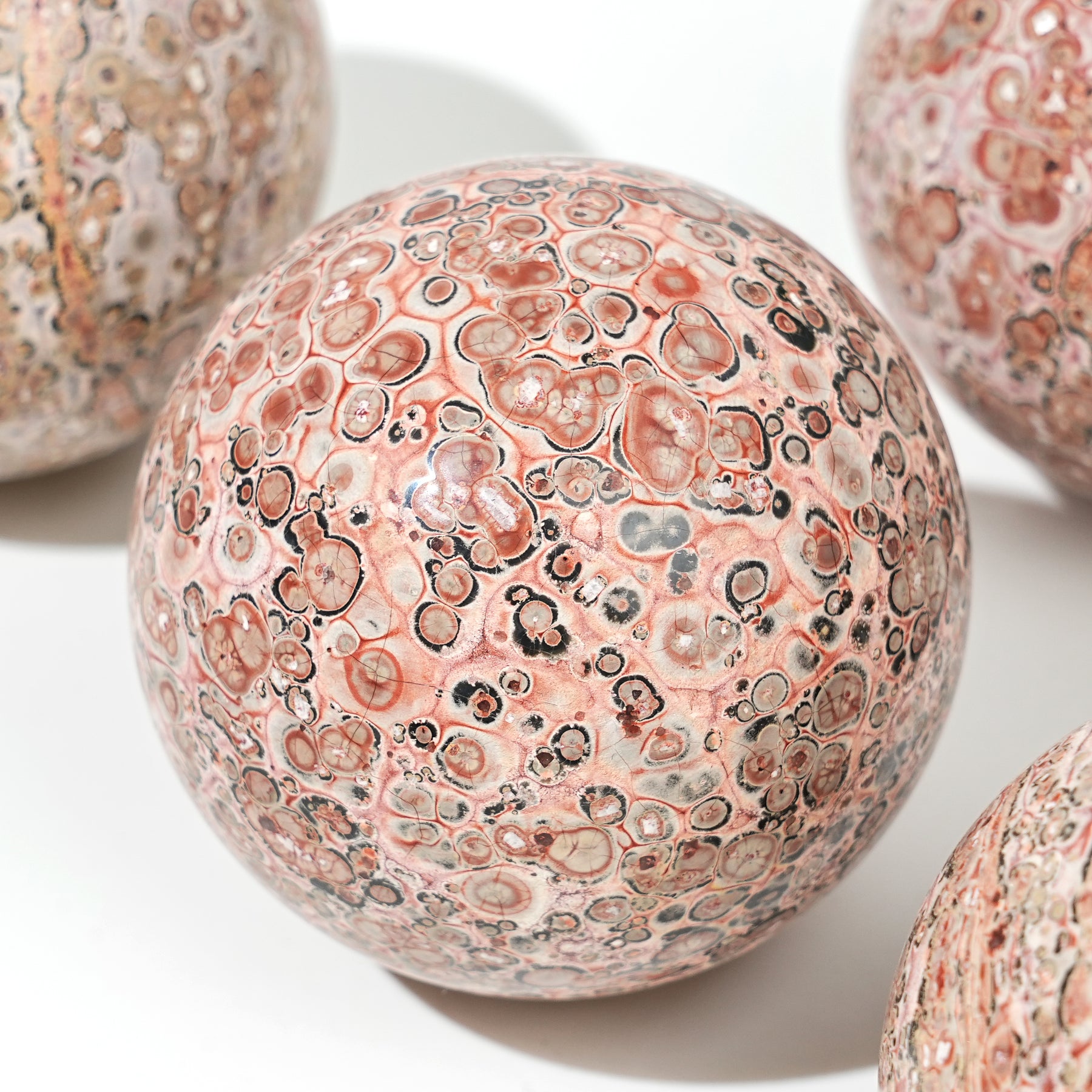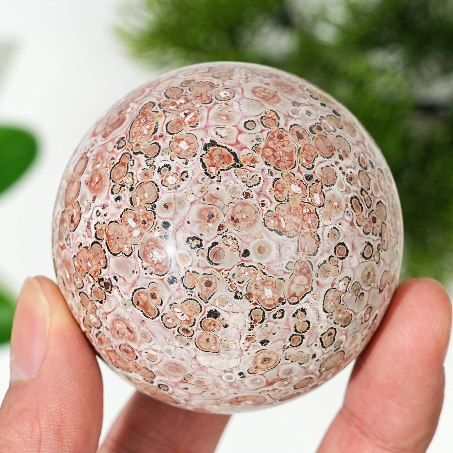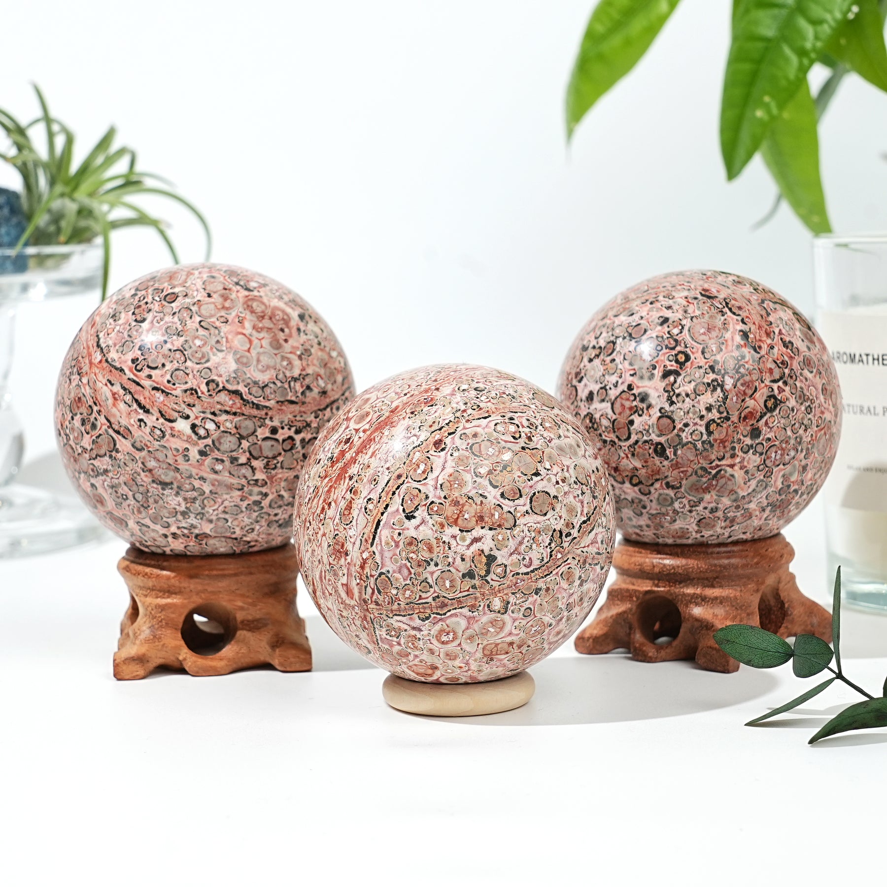 🌟Features: Crafted from natural leopard skin jasper, this sphere features eye-catching spotted patterns in warm, earthy tones 🐆. Each sphere has a smooth, rounded shape, highlighting the stone’s unique and organic textures, making it a standout decor piece full of natural charm.