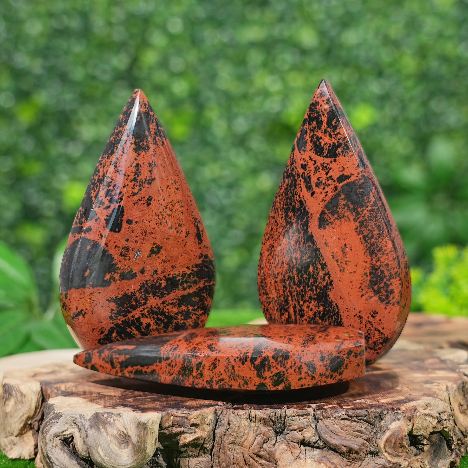 🌟Features:Inspired by the quiet drama of a teardrop—an emblem of depth, release, and gentle strength—these pieces are crafted from natural Mahogany Obsidian. Each teardrop shape boasts a rich, warm base of deep amber-red, swirled with bold, inky black patterns that look like smoldering embers caught in stone. The curve is soft yet striking, no two pieces are identical.