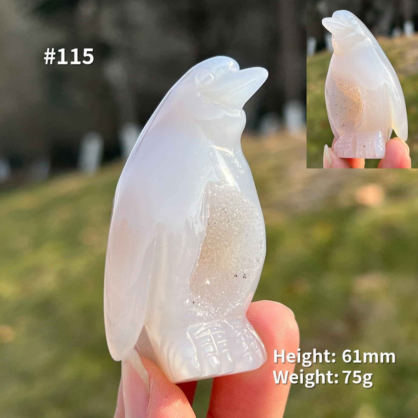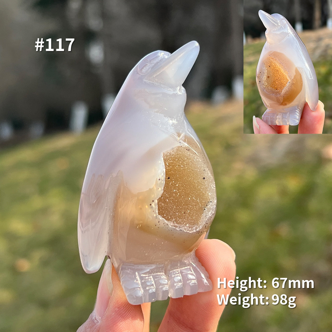 Each agate geode penguin is unique, with a height ranging from 7 to 10 cm