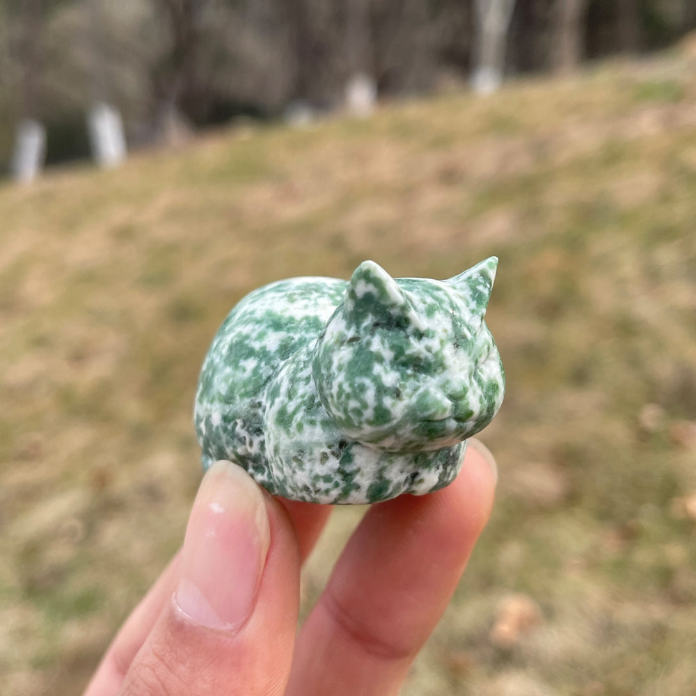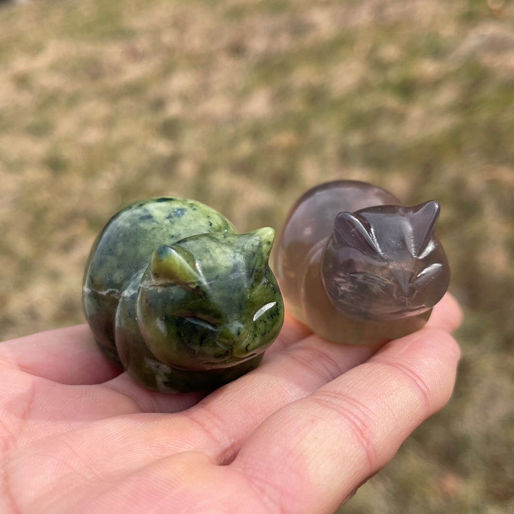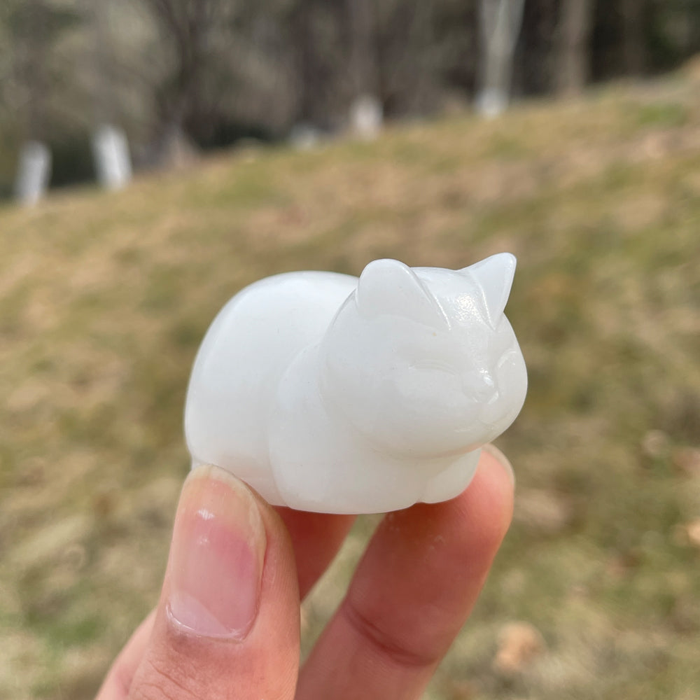 This is a crystal carved into the shape of a chubby, cozy—think round, plump curves just like a soft loaf of bread 🥖, tiny pointed ears, and a relaxed, squishy silhouette that feels endlessly huggable. The design leans into the vibe: it’s crafted to look like a tiny, comforting companion that blends the warmth with the quiet charm of a napping cat.It’s meant to be a small, tangible reminder of coziness, whether you tuck it on a desk, shelf, or hold it in your palm.