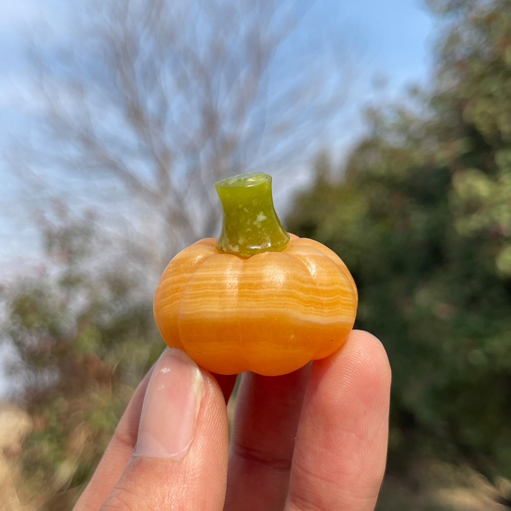 Hand - carved from natural Yellow Calcite, each Pumpkin weighs about 70g. The warm, sunny - yellow tones with gentle stripes, plus the cute green “stems”, make them look like tiny, cheerful harvest treasures. Perfect for adding a touch of cozy, natural charm to your space 🍂.