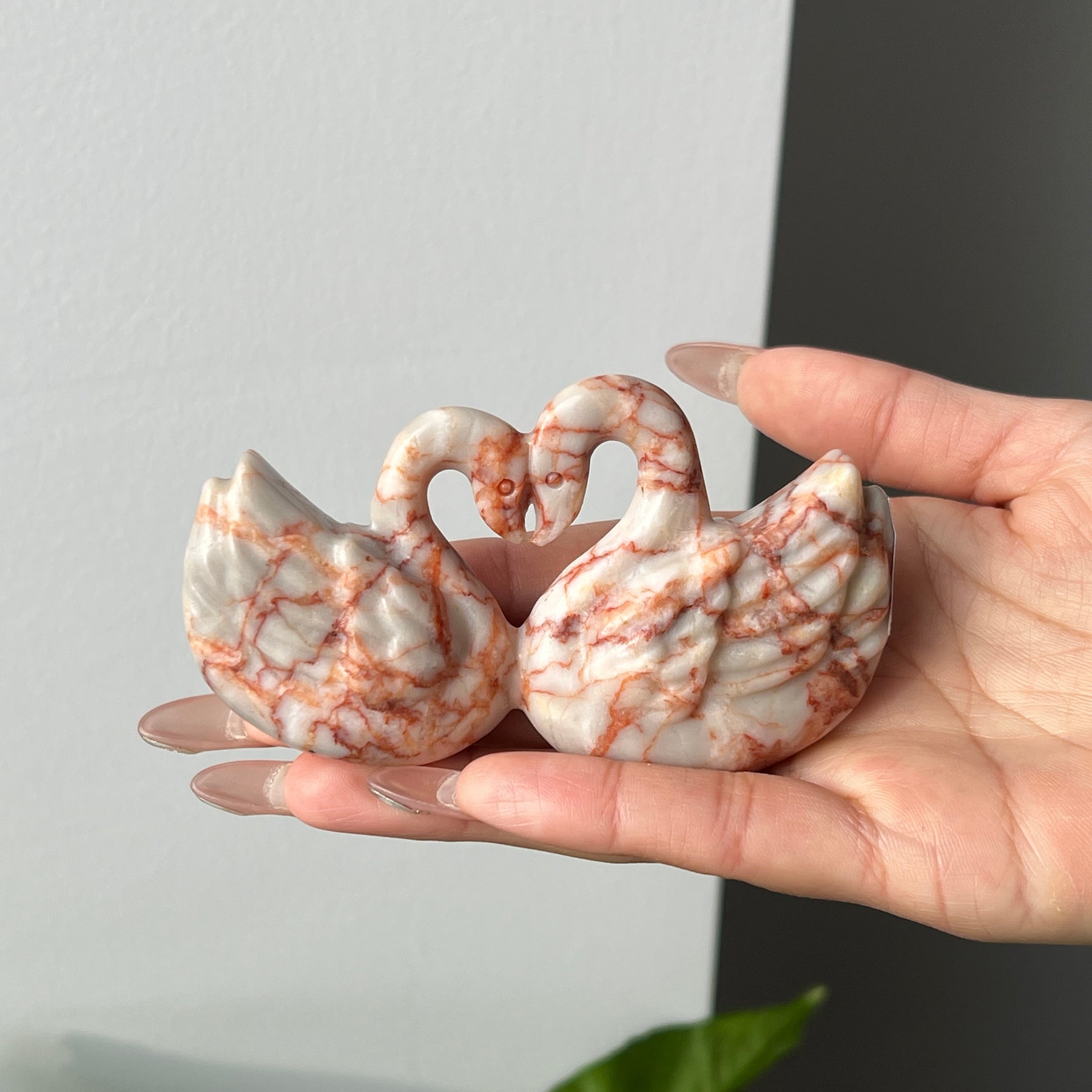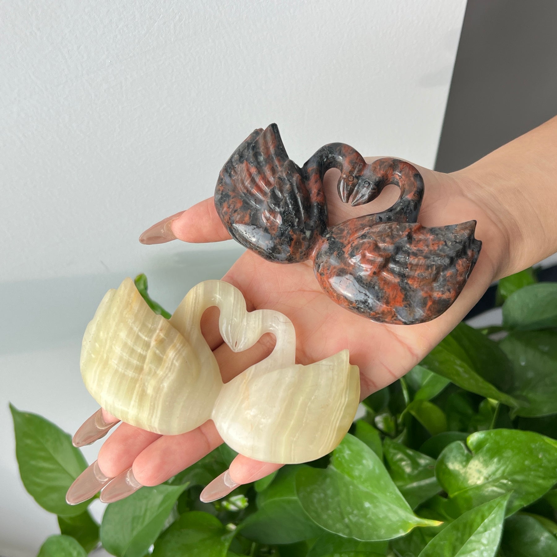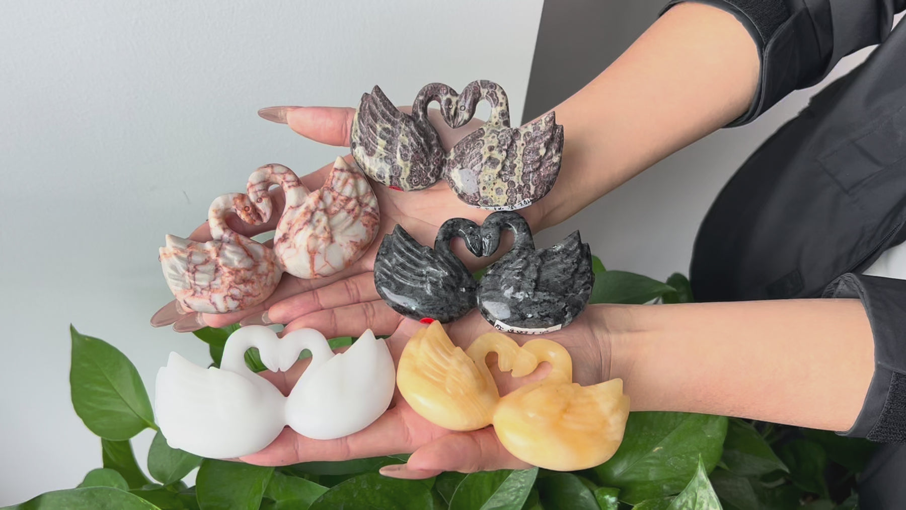 🌟Features: Hand - carved from natural stones, these heart - shaped swans come in colors like white, yellow, and patterned hues. Smooth surfaces and detailed feather carvings make them elegant, like love symbols floating on water 🦢. Each has unique natural textures.