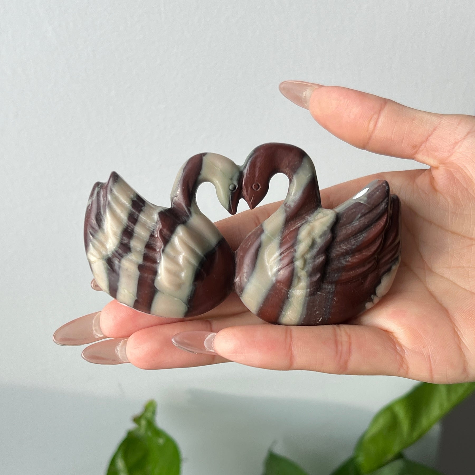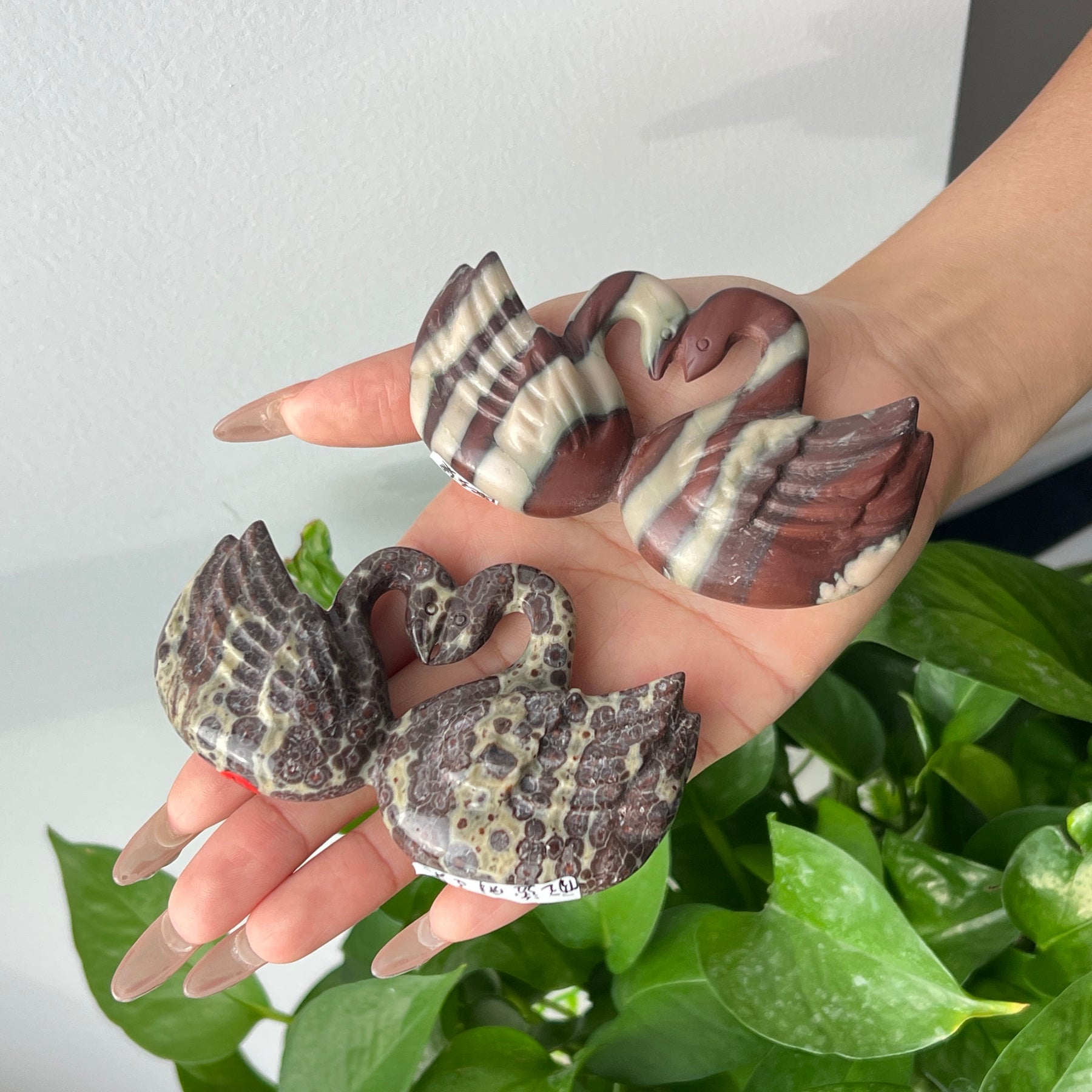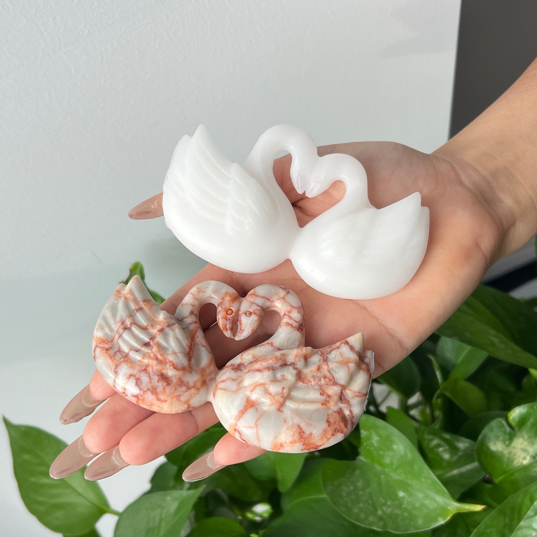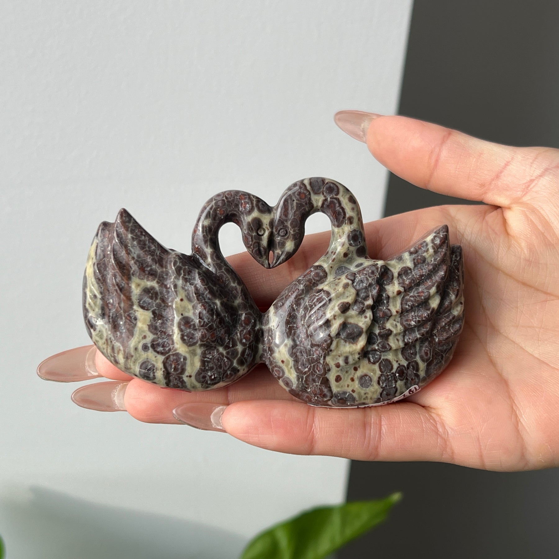 🌟Features: Hand - carved from natural stones, these heart - shaped swans come in colors like white, yellow, and patterned hues. Smooth surfaces and detailed feather carvings make them elegant, like love symbols floating on water 🦢. Each has unique natural textures.