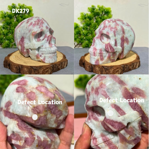 Each piece is meticulously crafted from stunning Plum Tourmaline, adorned with distinctive red spots resembling plum blossoms, making every skull a one-of-a-kind work of art. 🌸✨