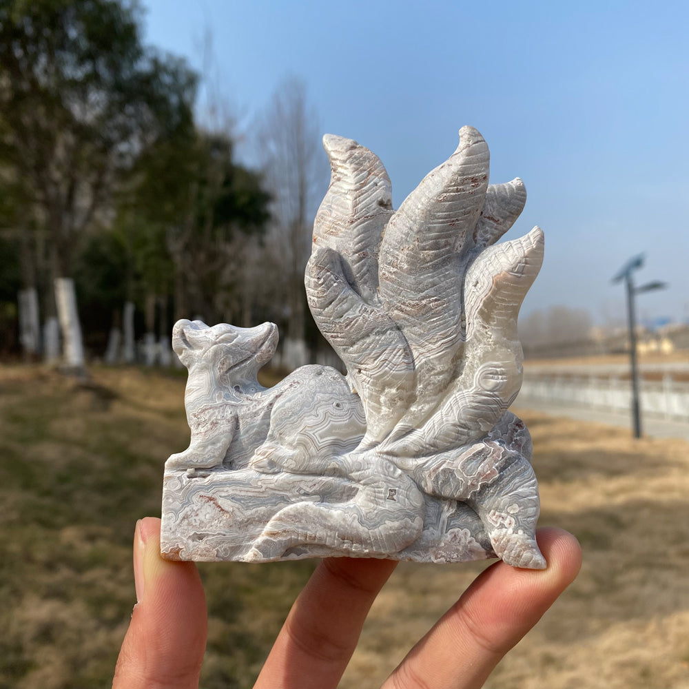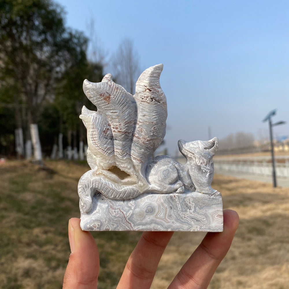 Unique Natural Crystal White Mexican Agate Nine-Tailed Fox