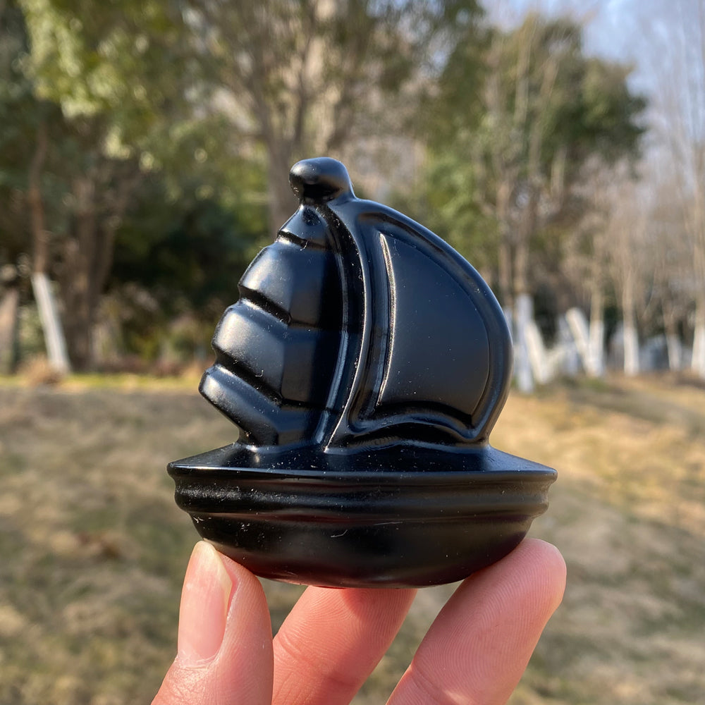 Unique, Natural Carving Golden Obsidian Dragon Skull