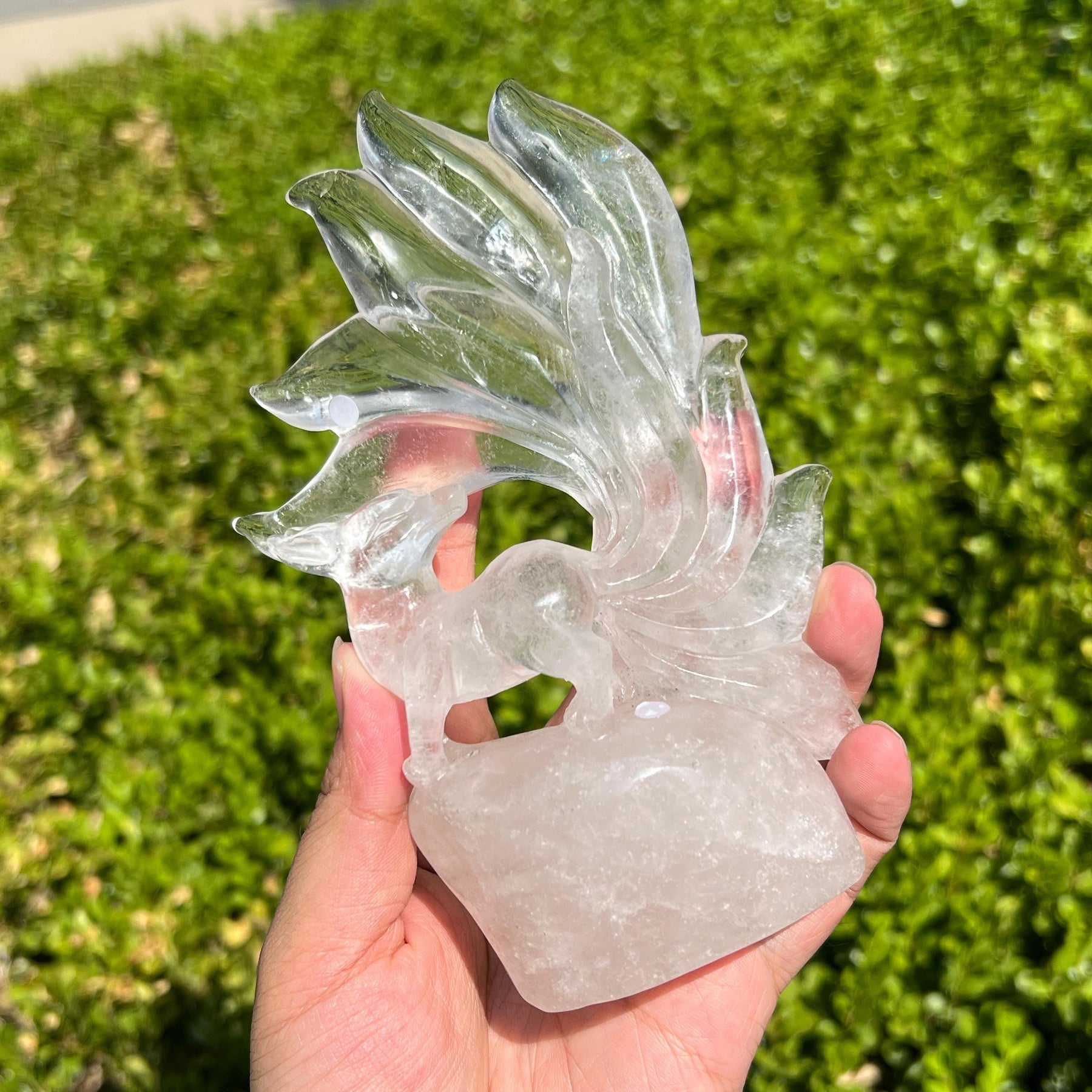 Clear Quartz Nine-Tailed Fox Carving