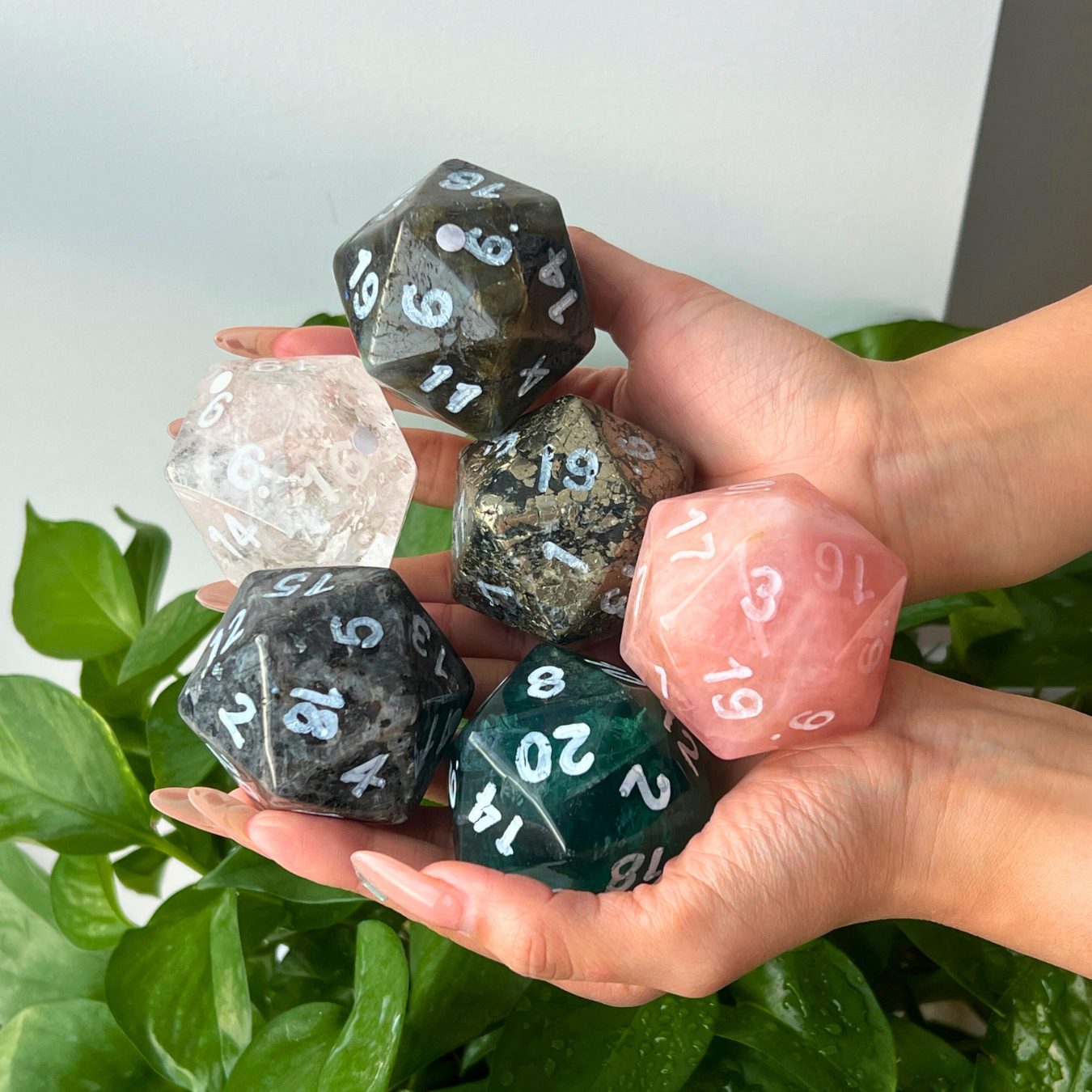 🌟Features: Hand - carved from natural crystals, these dice come in colors like clear, green, black, and pink. Multi - faceted with clear numbers, they’re both fun for games and showcase crystal beauty. 🎲