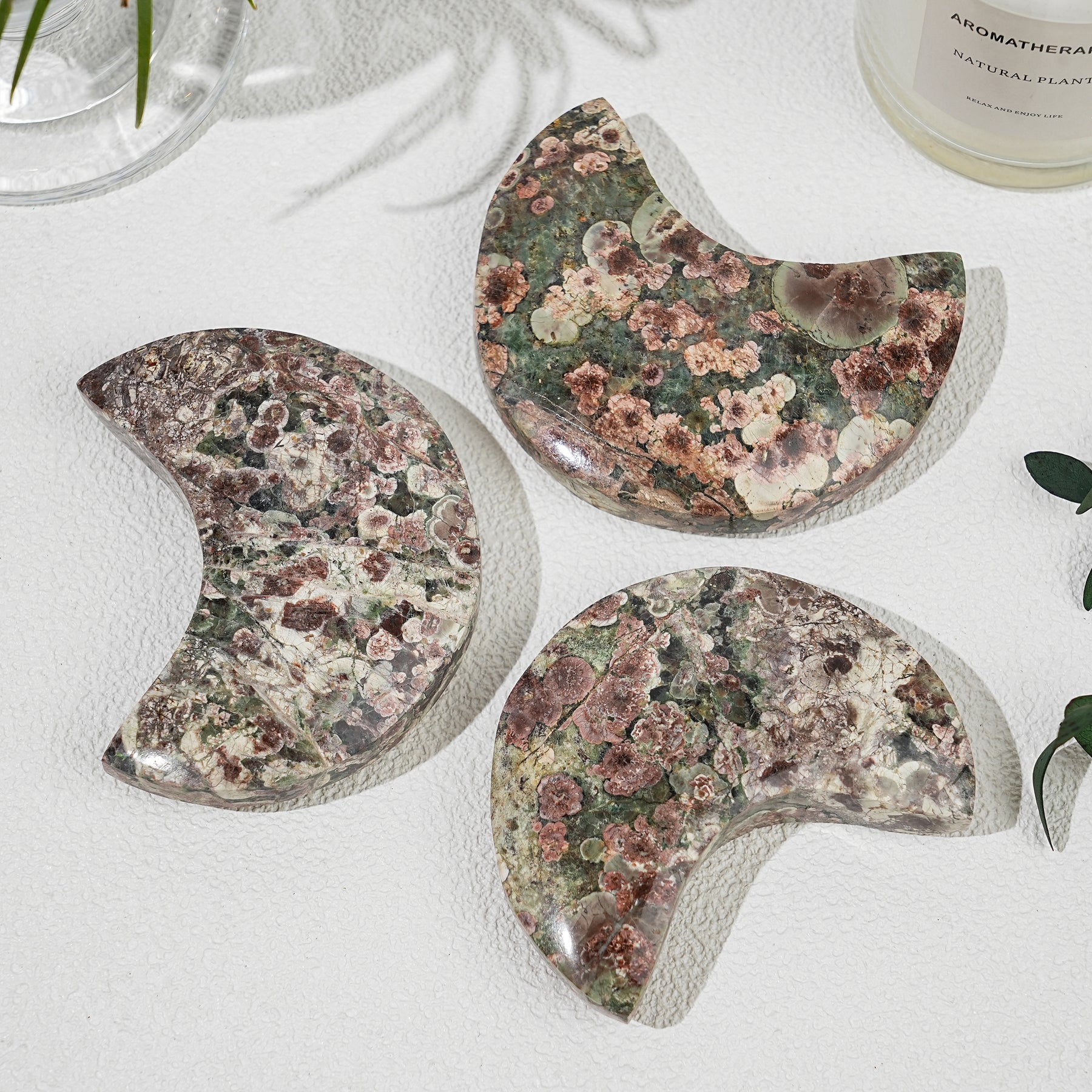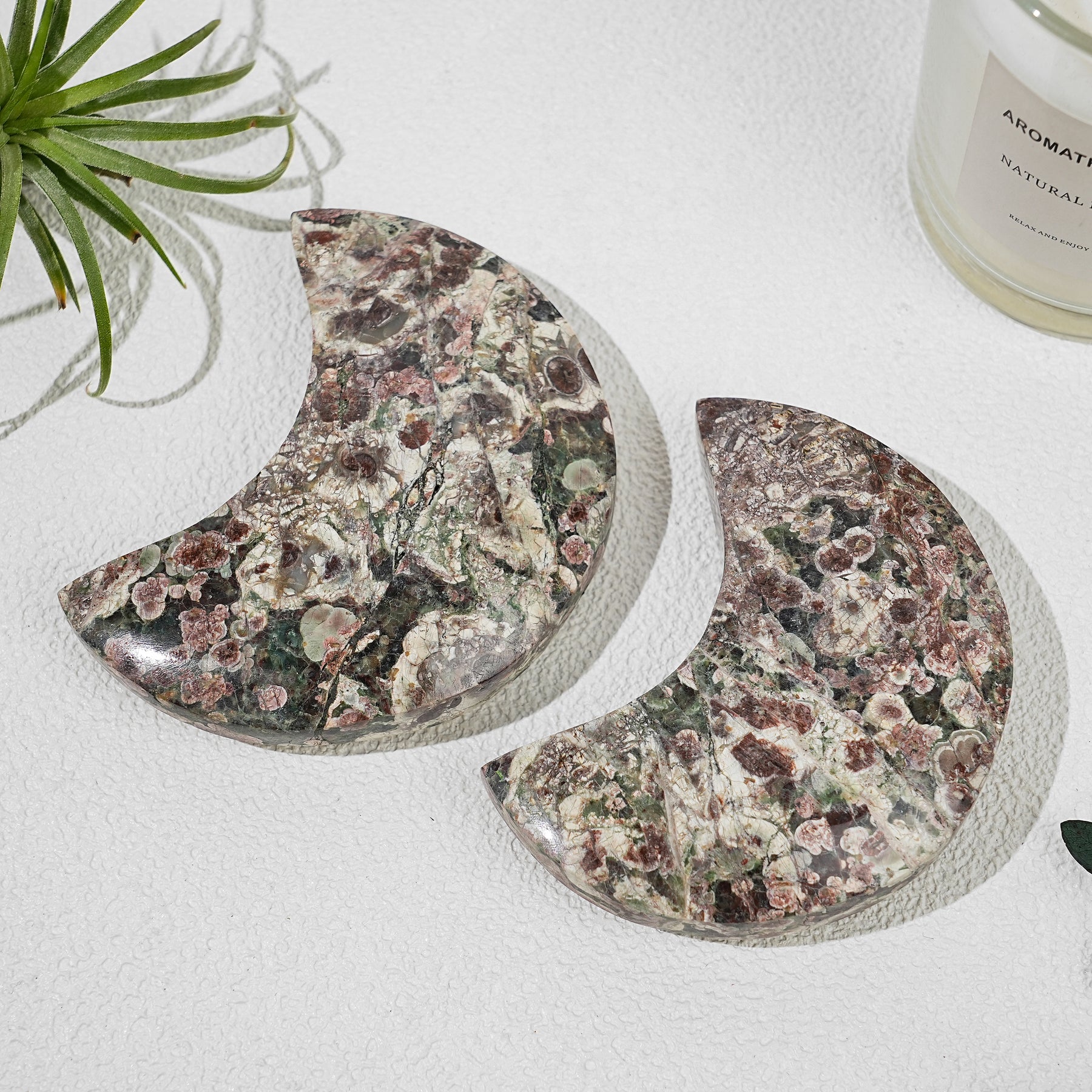 Crafted from natural Money Agate, this moon-shaped piece features warm earthy tones with unique banded patterns—each is one-of-a-kind, boasting a smooth polished surface that glows softly 🌙💎. Its rounded, celestial design adds a cozy, organic charm to any space.