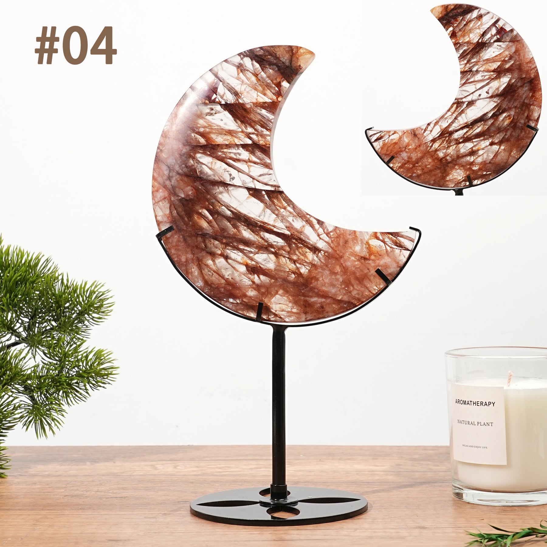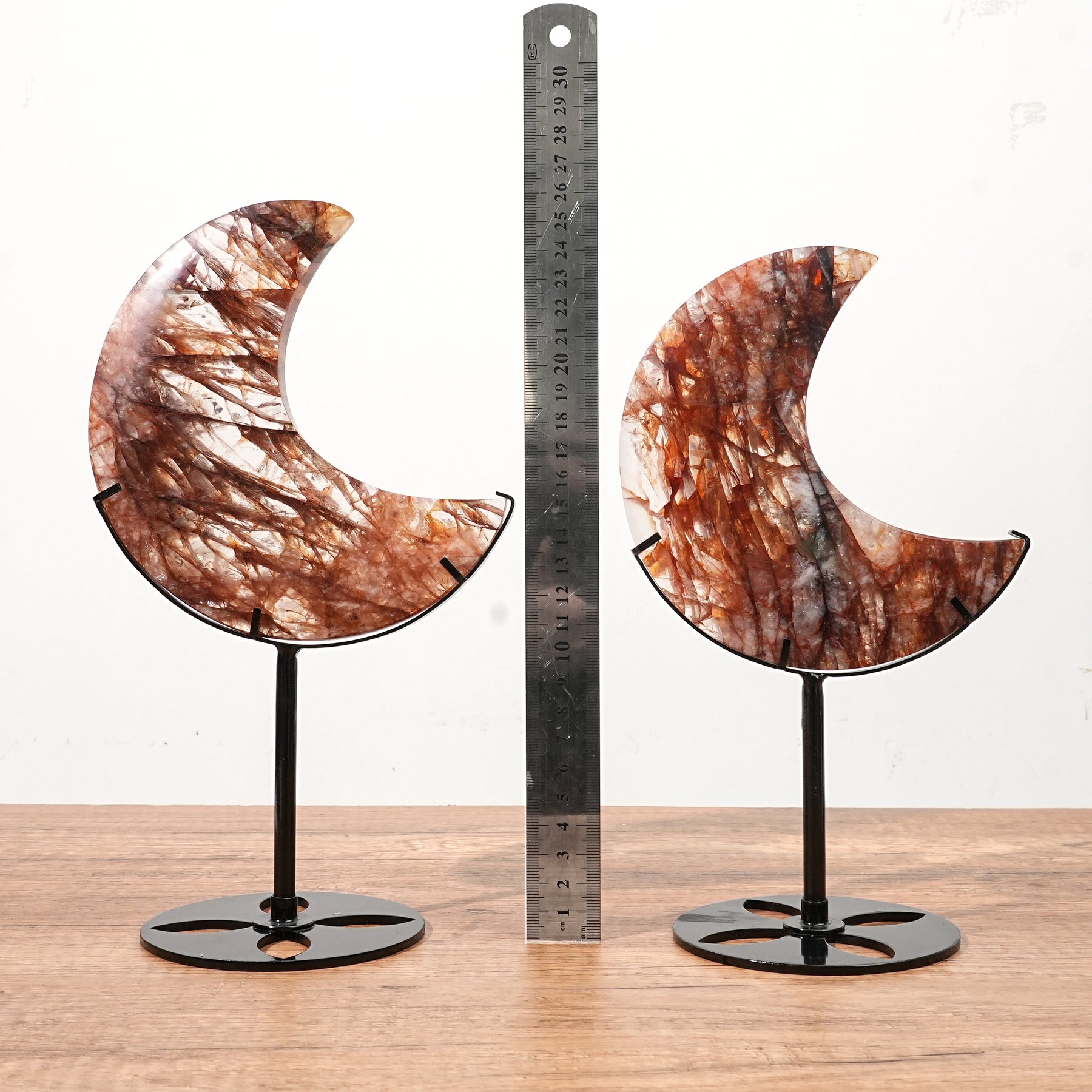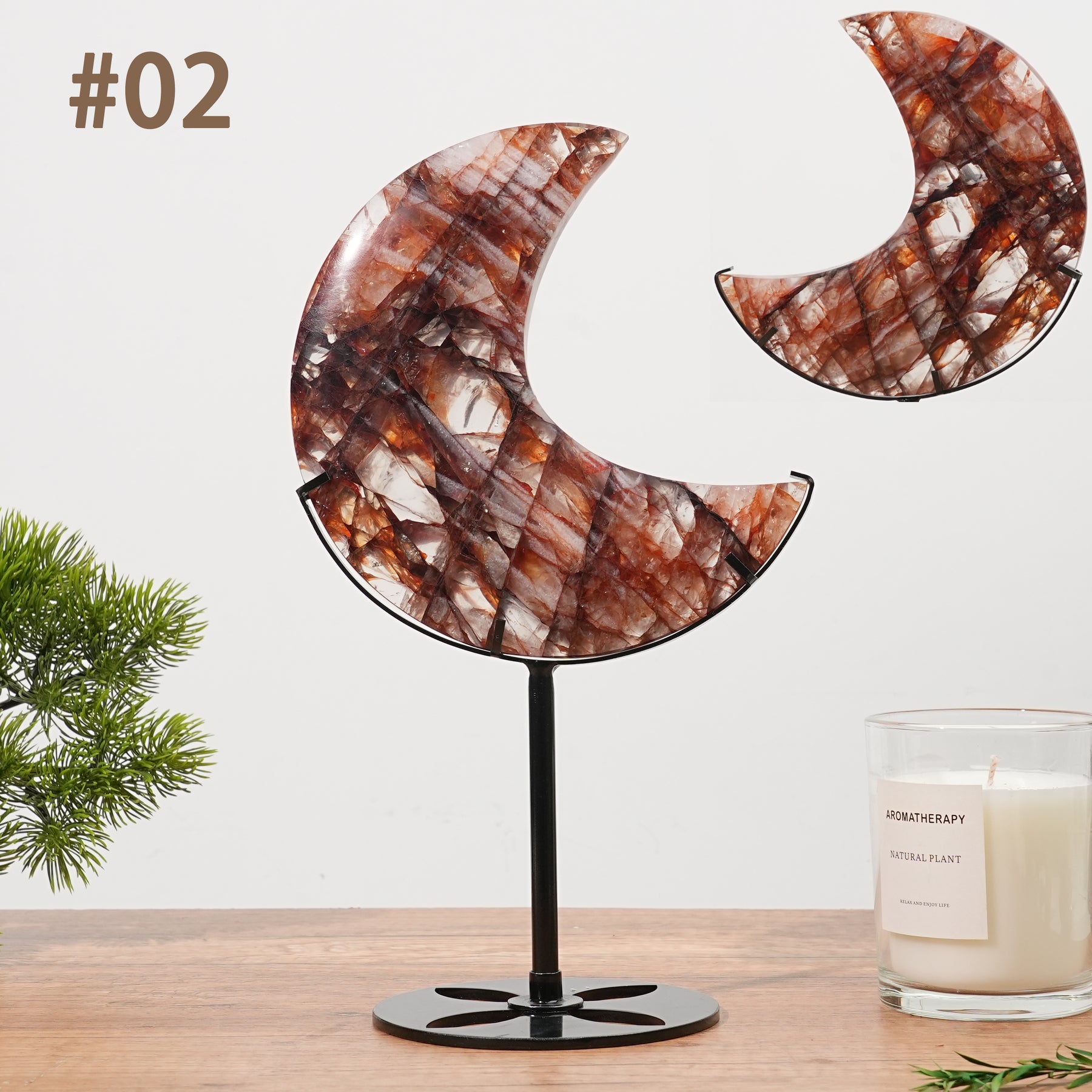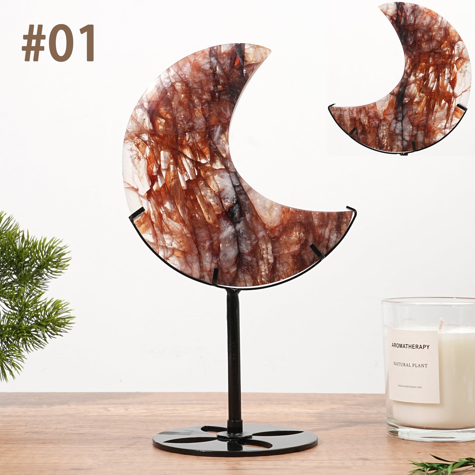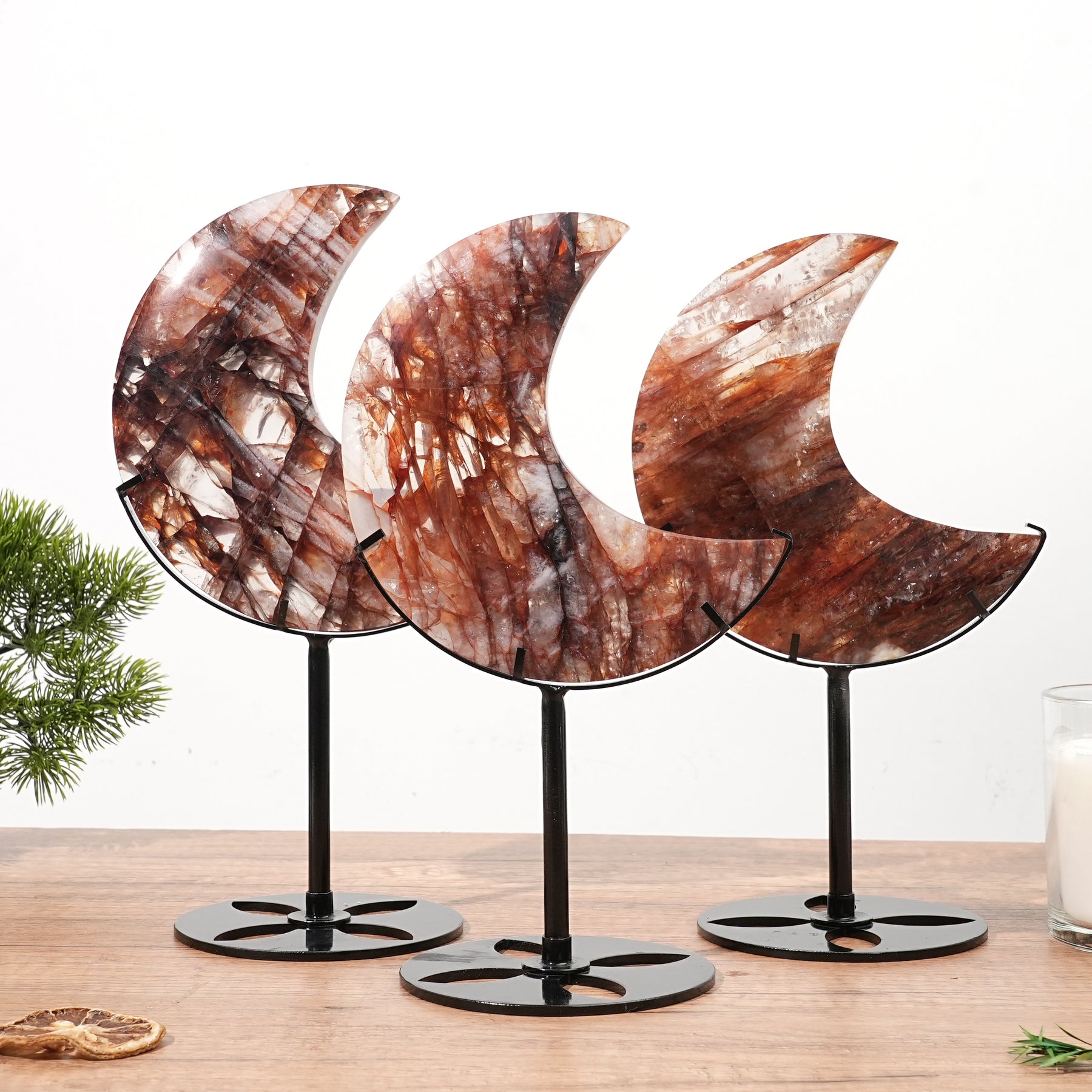 🌟Features:These moon-shaped decor pieces feature rich reddish-brown hues with unique crystalline patterns. Each piece is distinct, showcasing the stone’s natural beauty and glossy finish, making them a stunning addition to any space 🌙.