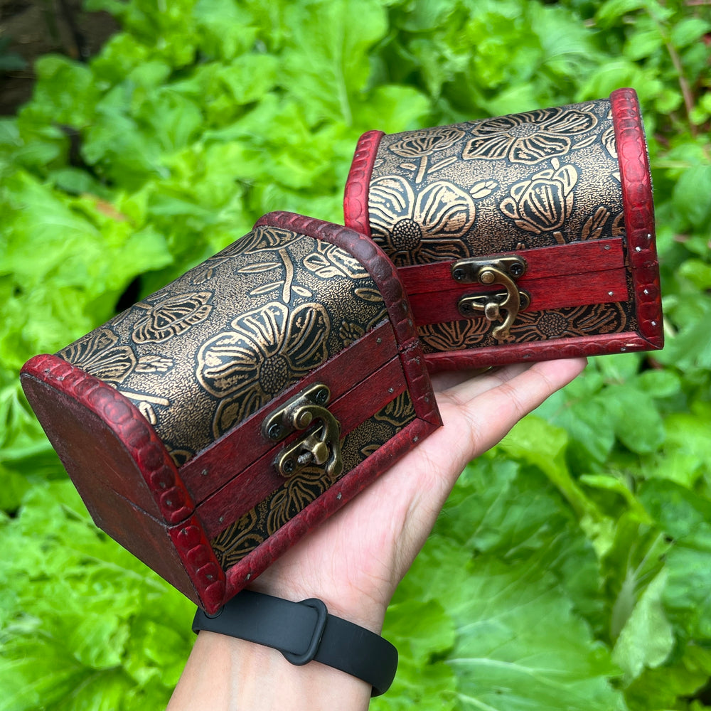 This elegantly designed wooden storage box features intricate floral patterns, adding a touch of vintage charm to your space. Each box is with random pattern styles,The compact size makes it perfect for holding small treasures like crystals, jewelry, or keepsakes.