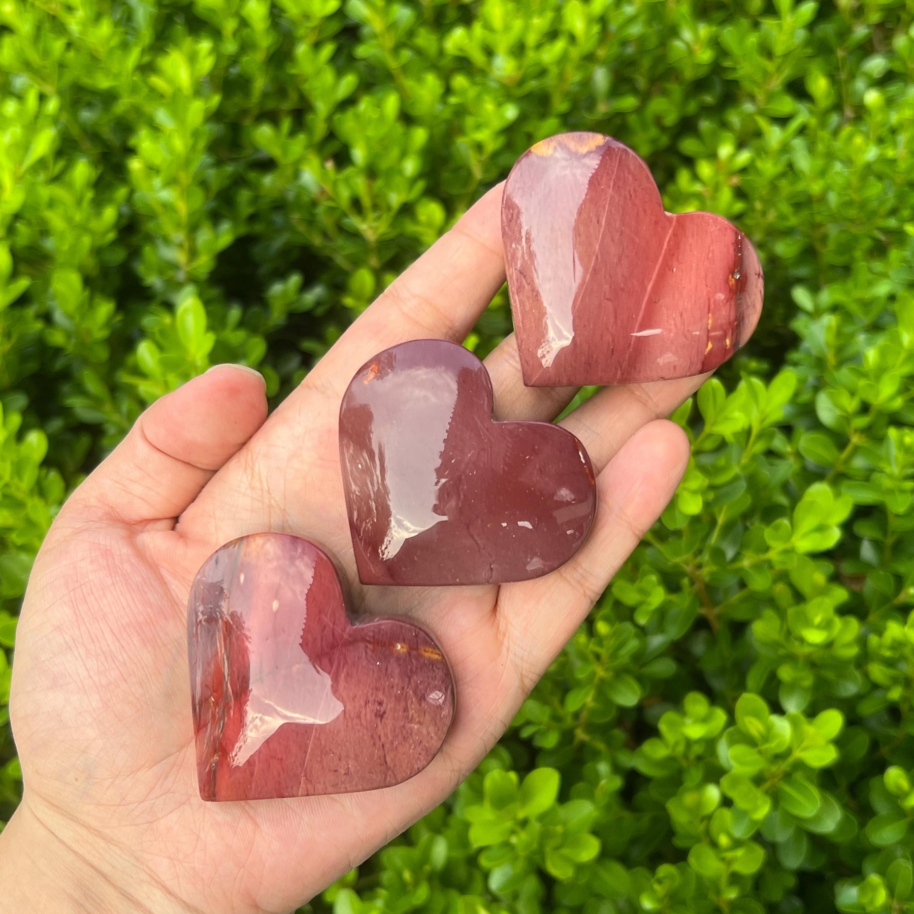 Carved from natural mookaite, this heart features rich earthy red hues with unique patterns, exuding a grounding and vibrant charm 💕. Its surface makes it a standout piece.