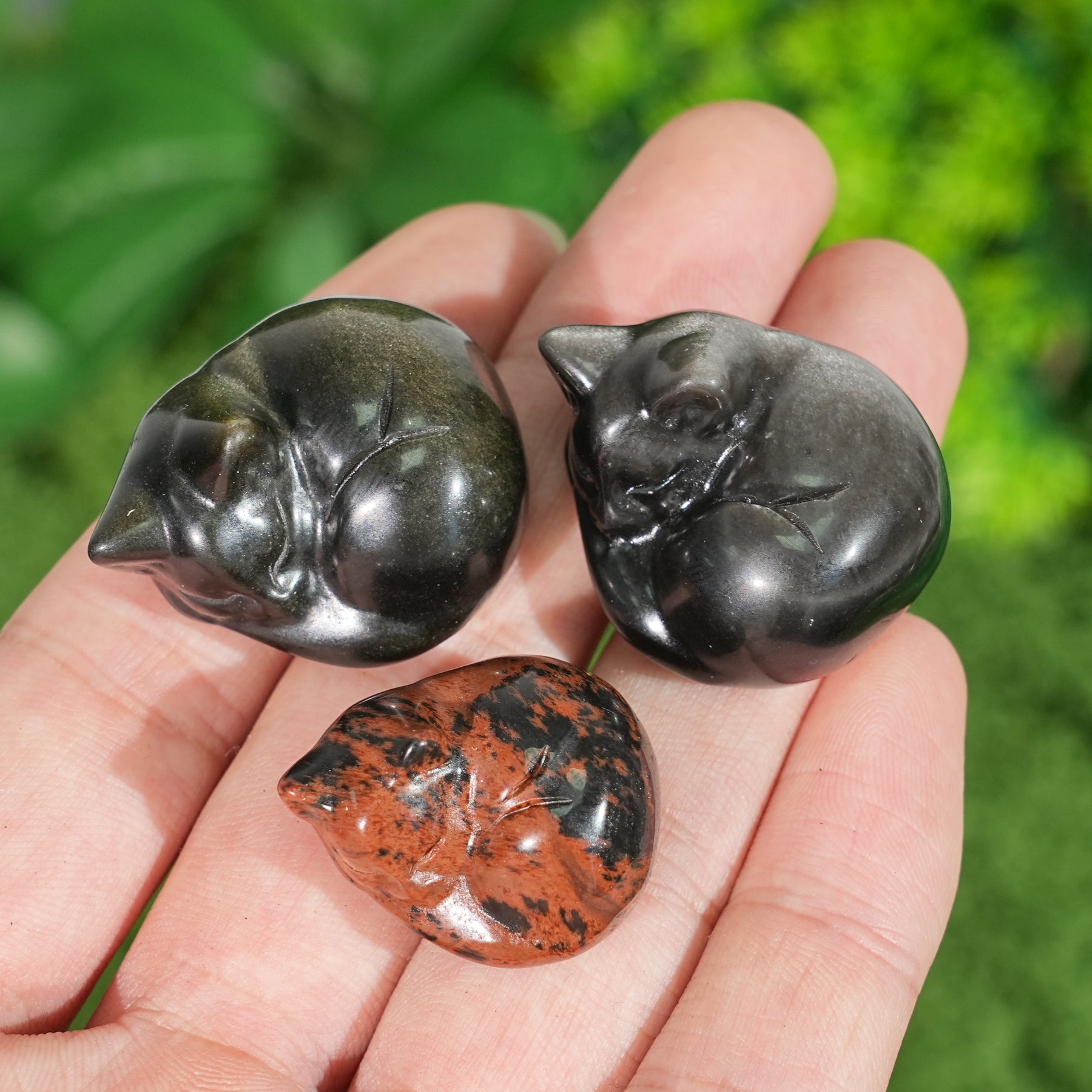 🌟Features:These are natural crystal carved into cozy sleeping cat figurines—boasting smooth, glossy surfaces with subtle, earthy color patterns, like warm rust-and-black marbling or deep shimmery gray and a plump, curled silhouette with soft, rounded ears and closed eyes that feel extra cuddly 🥰! The compact, palm-sized shape fits perfectly in your hand.Inspired by the gentle calm of napping cats those quiet, we paired this cozy vibe with crystal’s inherent soothing energy to create a piece that feels like a tiny dose of relaxation. It’s a charming gift for cat lovers, anyone who needs a little daily calm, or anyone who adores whimsical, meaningful decor!