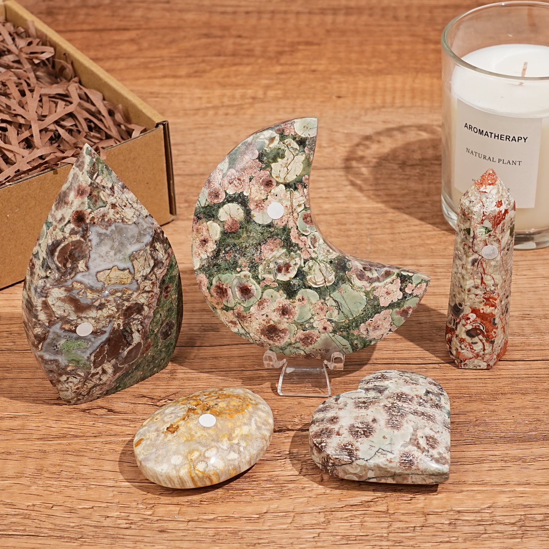 • Crazy Agate Heart Worry Stone*1 – Calms anxiety, eases stress & brings comfort 💗