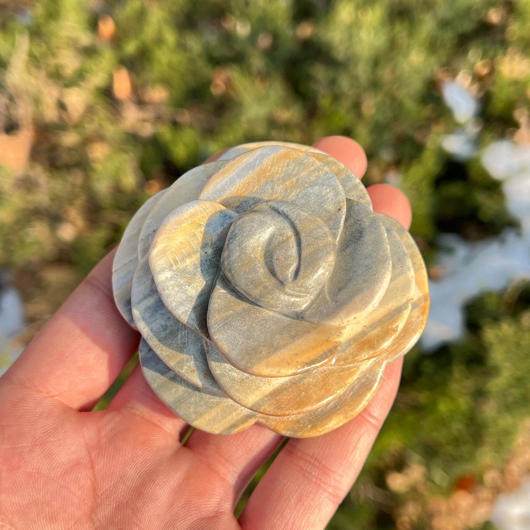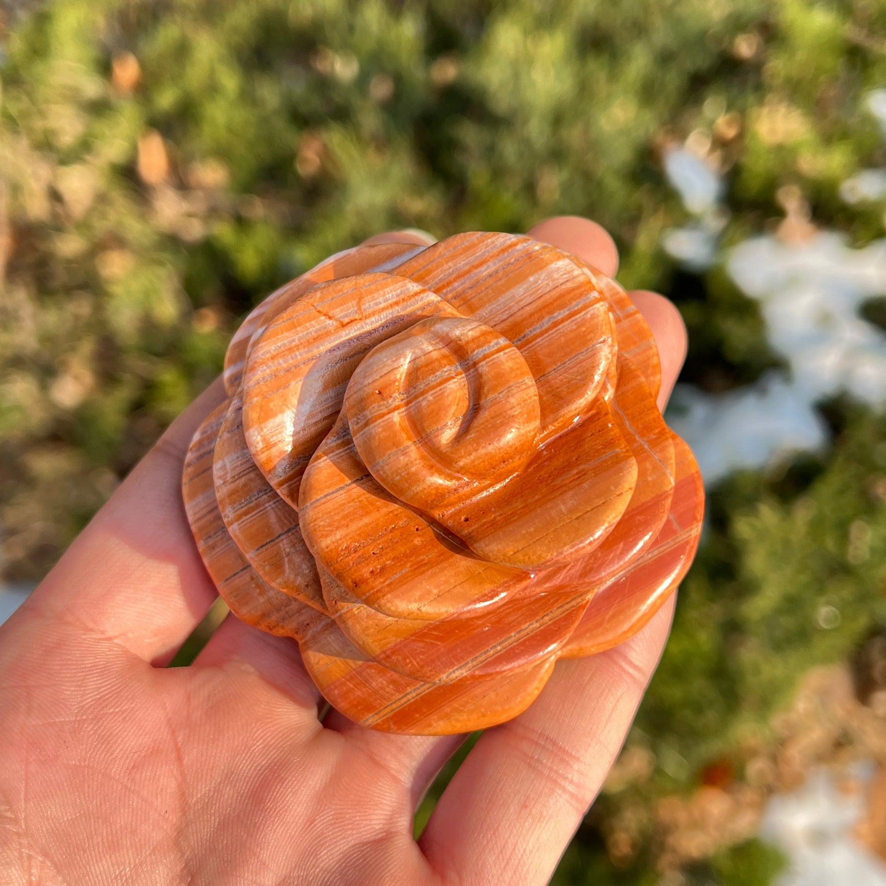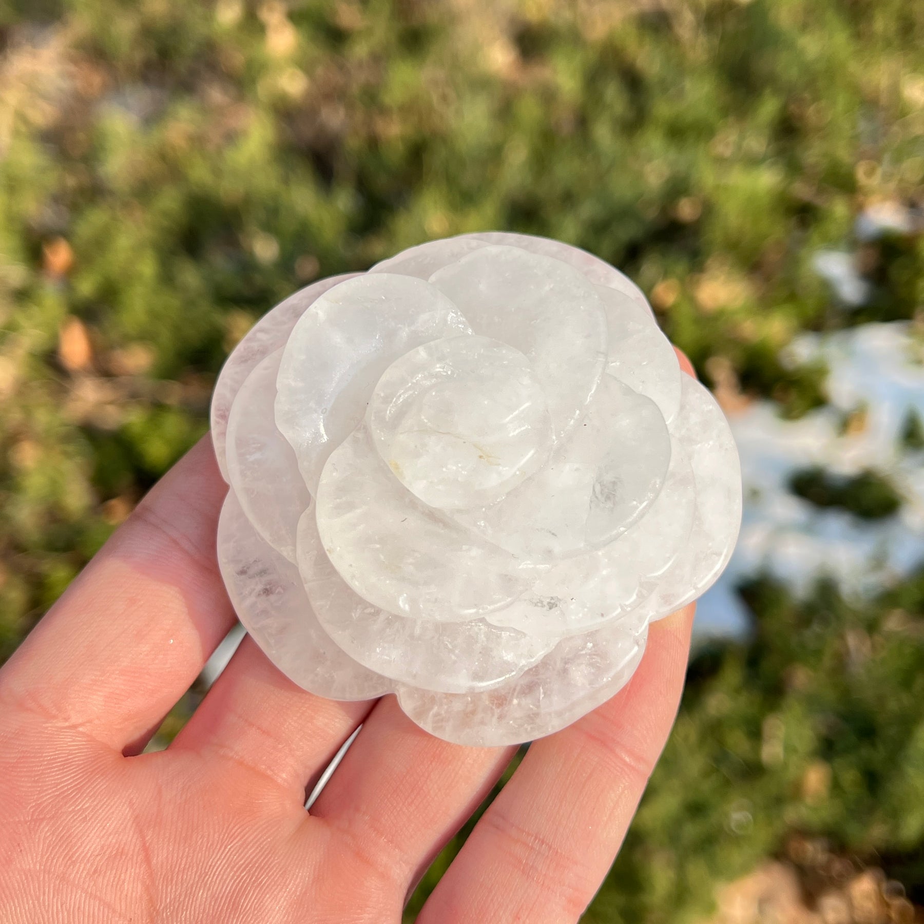🌟Features:This delicate piece is a natural crystal carving shaped into a full-bloom rose—with layered, curved petals that mimic the softness of a real flower 🌈!Each rose carries a romantic, tactile charm: its smooth petals catch light to create a subtle glow, and the compact, detailed form feels like holding a tiny, eternal bloom.Inspired by the rose’s symbolism of "love & beauty" a timeless symbol of heartfulness and grace,this design blends floral elegance with gentle energy: the layered petals evoke depth of feeling, while the varied hues mirror the many shades of connection from soft tenderness to bold devotion.