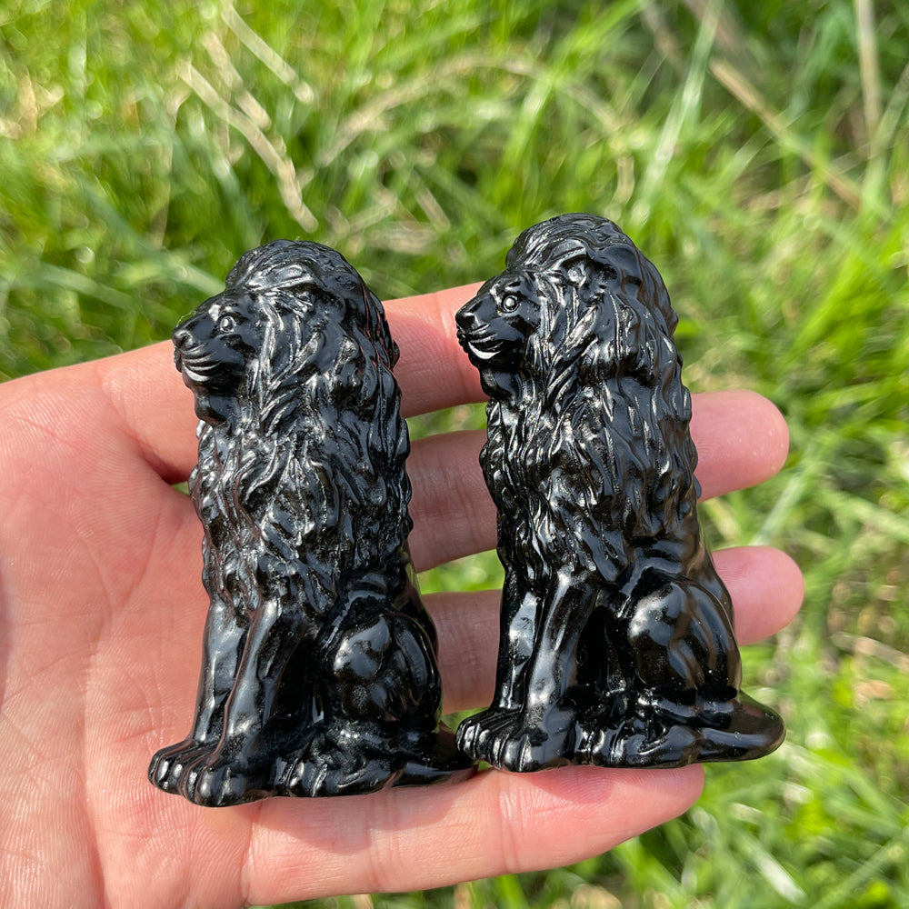 Crafted from natural obsidian, these lion carvings boast a sleek, glossy black appearance. Meticulously detailed, they capture the lion's majestic mane and powerful posture, looking like regal guardians ready to protect 🛡️.