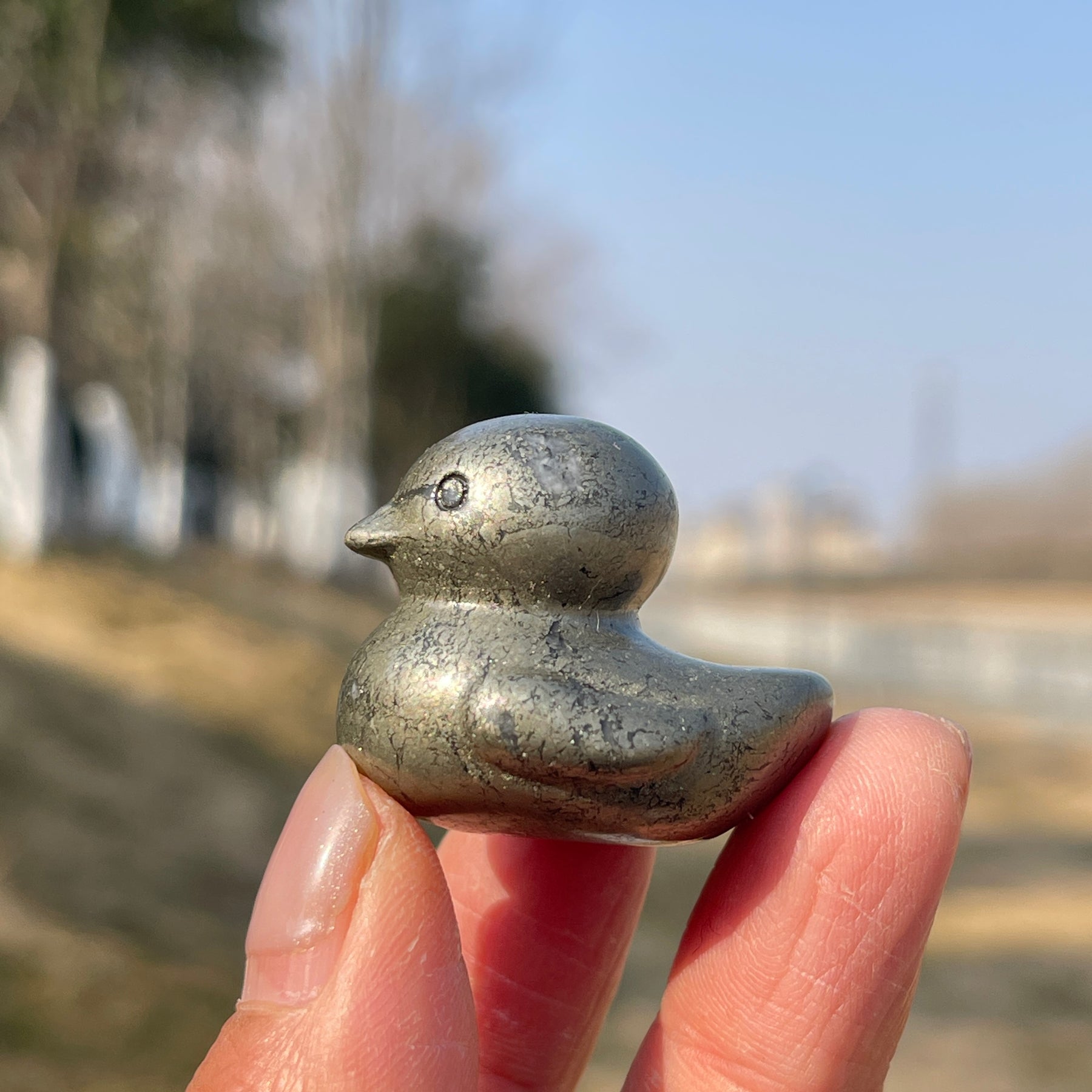 These cute Pyrite Ducks are made of shimmering Pyrite. Their metallic gray - golden hues and adorable shapes bring charm 🌟
