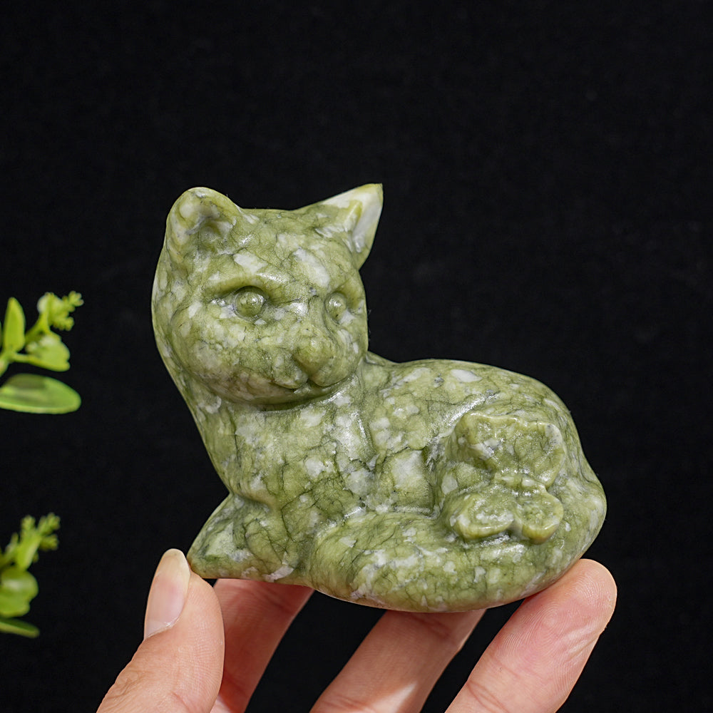 Natural Crystal Cat & Butterfly Carving